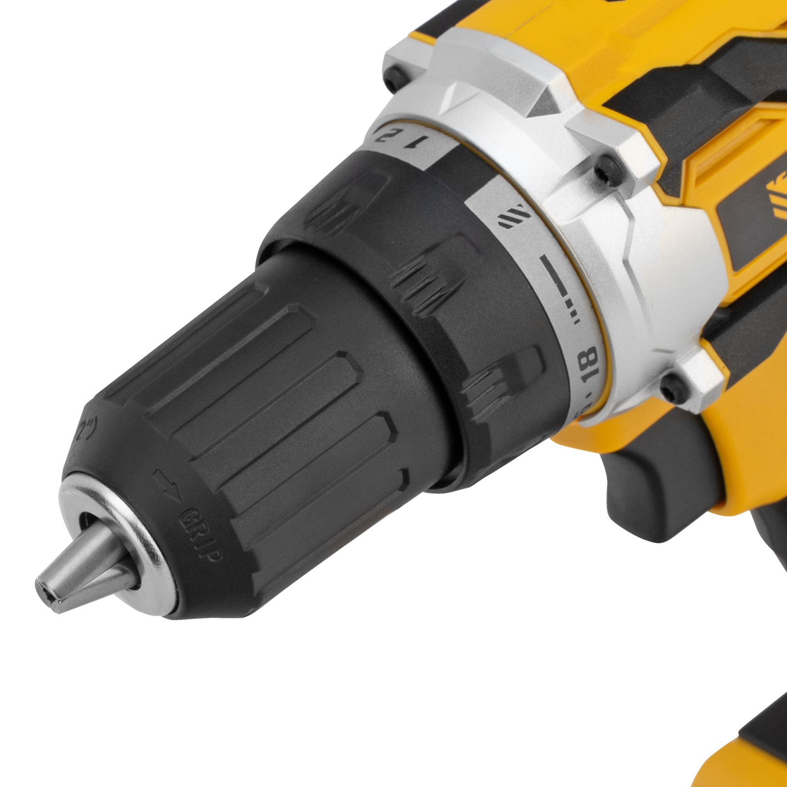 - Настройка крутящего момента — 18+1 ступень регулировки позволяет выбрать оптимальный режим в зависимости от типа крепежа и плотности материала.