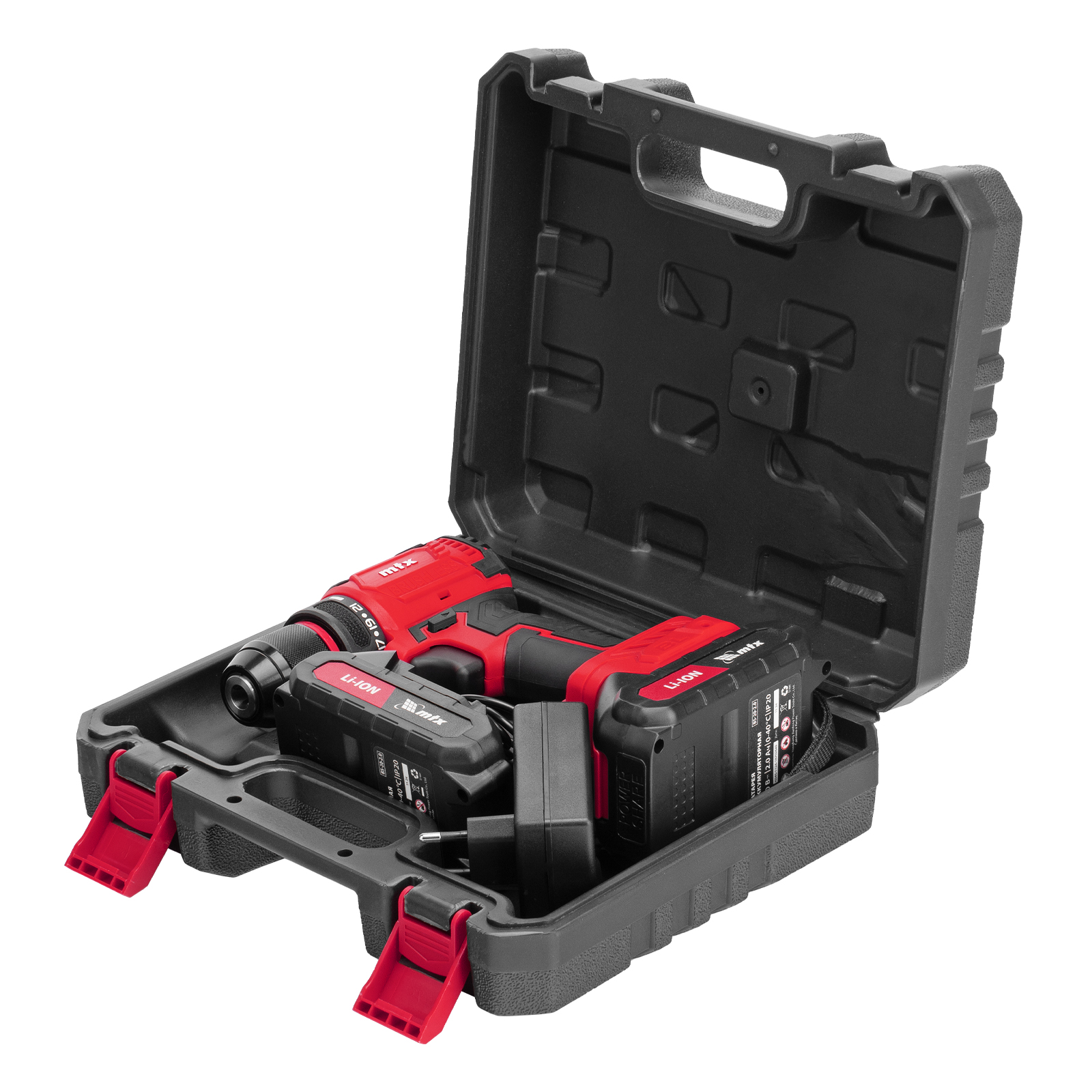 - Надежная упаковка — дрель-шуруповерт с аксессуарами поставляется в прочном кейсе, удобном для транспортировки и хранения.
