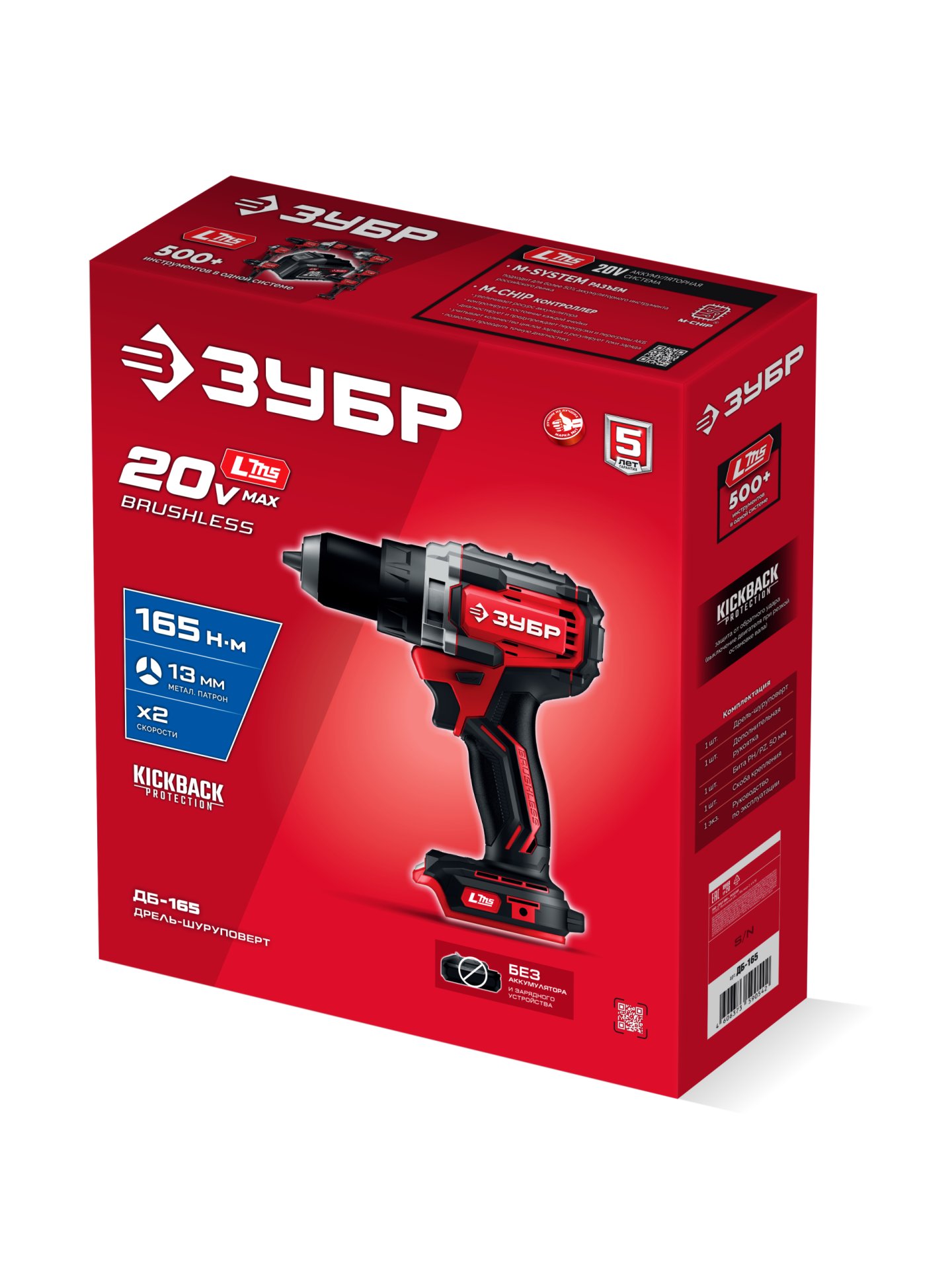 Бесщеточная дрель-шуруповерт ЗУБР системы LMS с максимальным крутящим моментом 165 Нм предназначена для работы с самым крупным крепежом (саморезы до 12 мм диаметром) и сверления отверстий до 40 мм в дереве. Встроенная защита от обратного удара предотвращает повреждение кисти при резкой блокировке вала