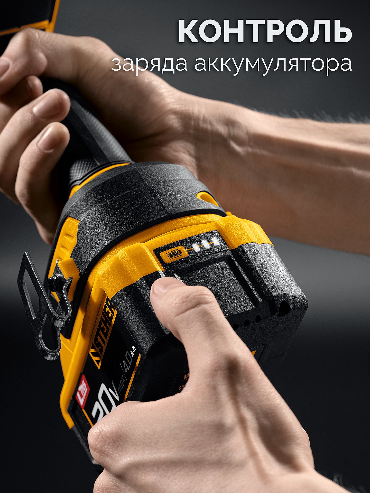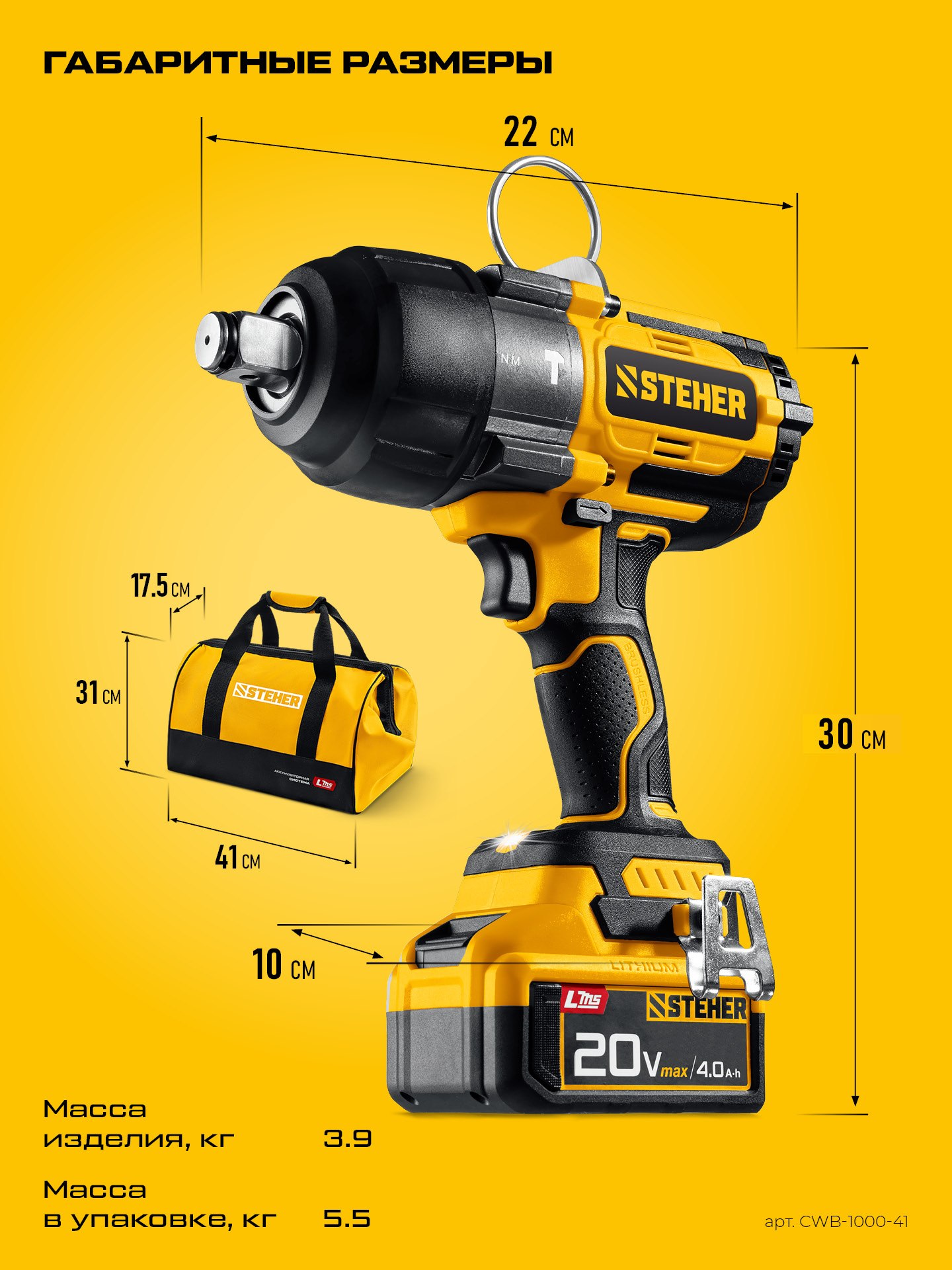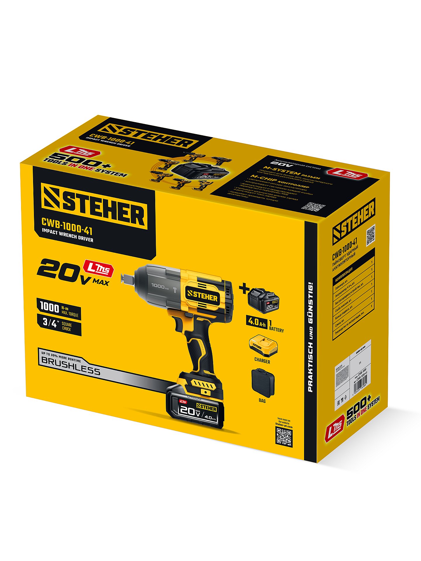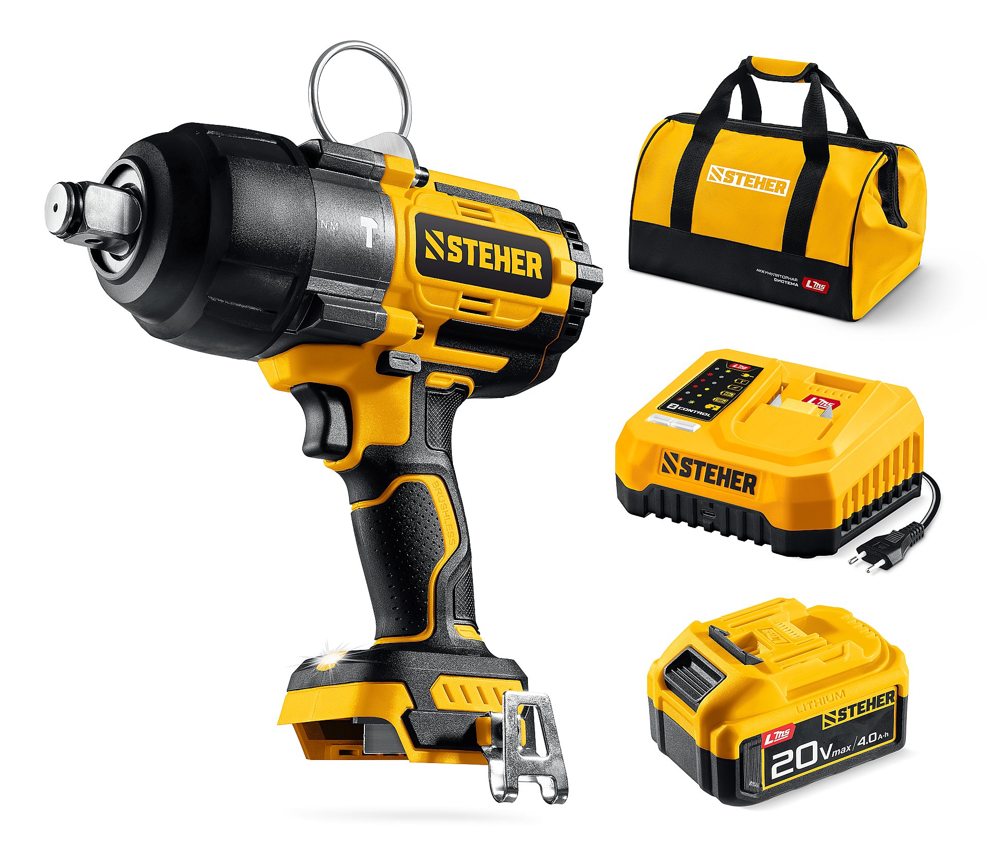 Ударный гайковерт Steher с BRUSHLESS двигателем и максимальным крутящим моментом 1000 Н∙м предназначен для фиксации резьбовых соединений размером до М22. Ударная функция с эффективным направлением удара обеспечивает легкое заворачивание без лишней нагрузки на кисть оператора. Имеет современную аккумуляторную систему LMS с 1 АКБ в комлекте, совместимую с одним известным брендом.