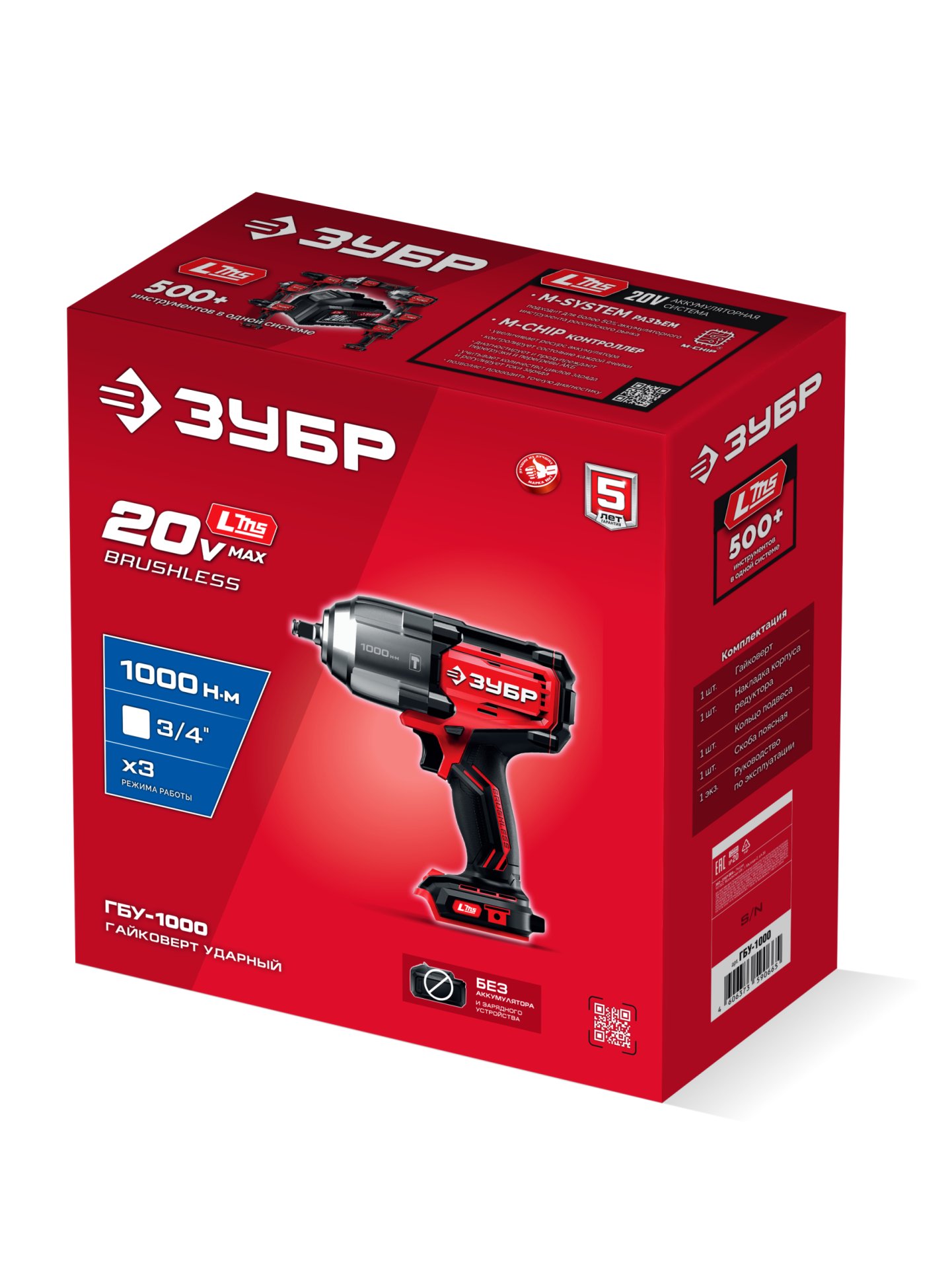 Бесщеточный ударный гайковерт ЗУБР системы LMS с максимальным крутящим моментом 1000 Нм предназначен для фиксации резьбовых соединений размером до М26. Ударная функция с тангенциальным направлением удара обеспечивает эффективное заворачивание без реактивного момента на кисть оператора