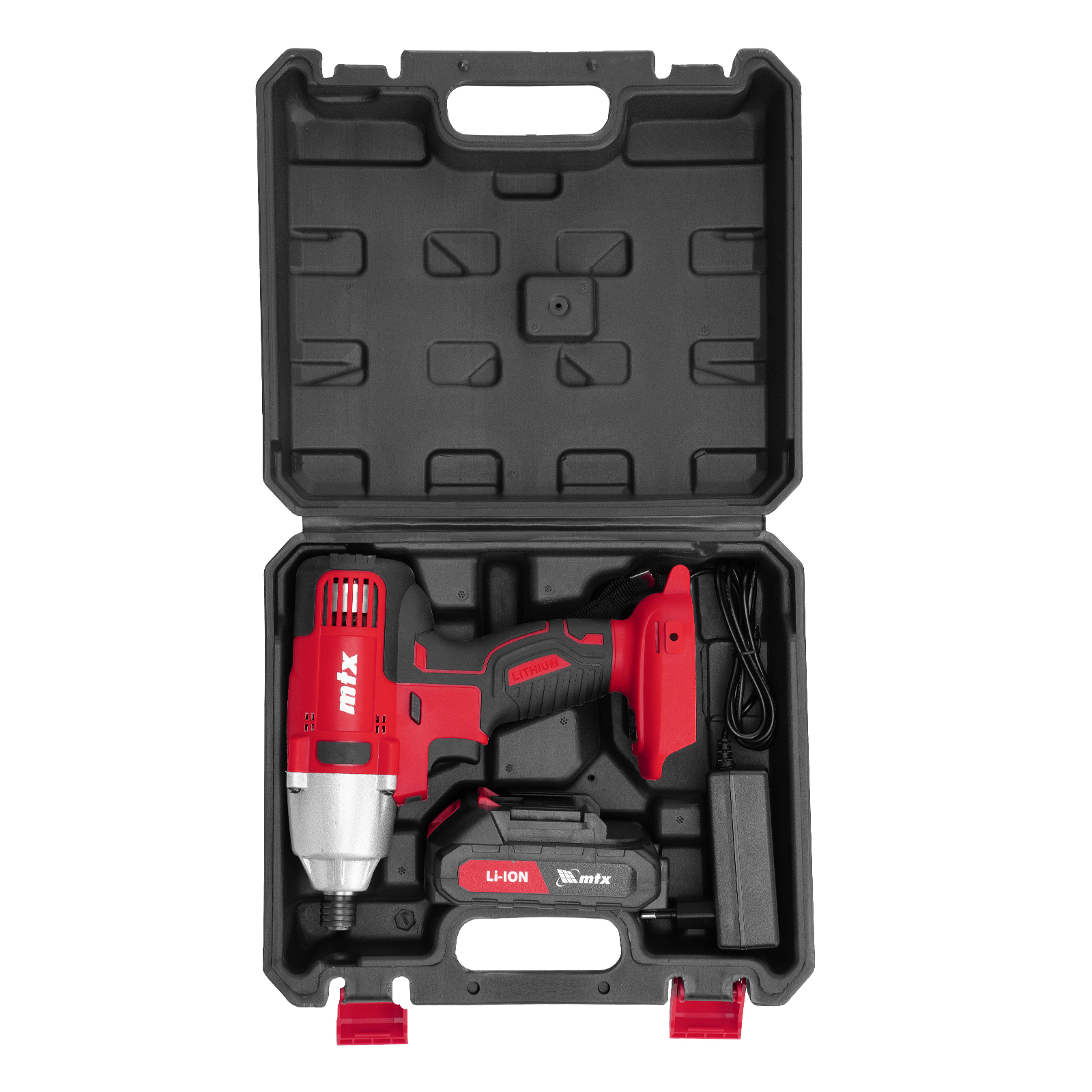 Ударный аккумуляторный винтоверт MTX CIDS-20-280 26580, в комплекте с аккумулятором 20 В емкостью 2 А·ч и зарядным устройством, предназначен для закручивания и откручивания винтов, шурупов, болтов и гаек. Развивает крутящий момент до 280 Н·м, что позволяет успешно решать поставленные задачи. Ударный механизм упрощает работу с туго затянутым или заржавевшим крепежом.