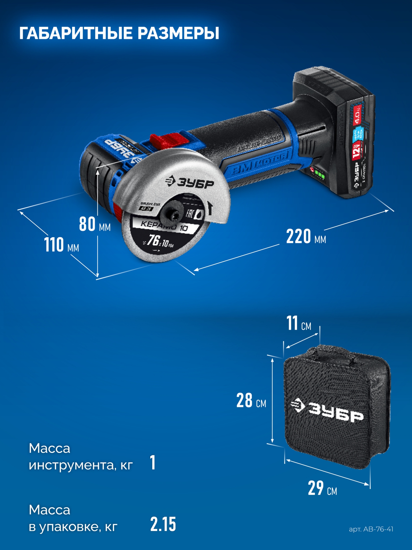 - отсутствие потери мощности в процессе работы - Батарея емкостью 4.0 Ач в комплекте для безостановочной работы