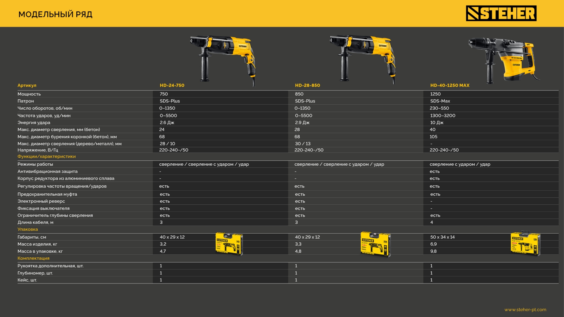- Патрон SDS-Plus для быстрой замены расходного инструмента
