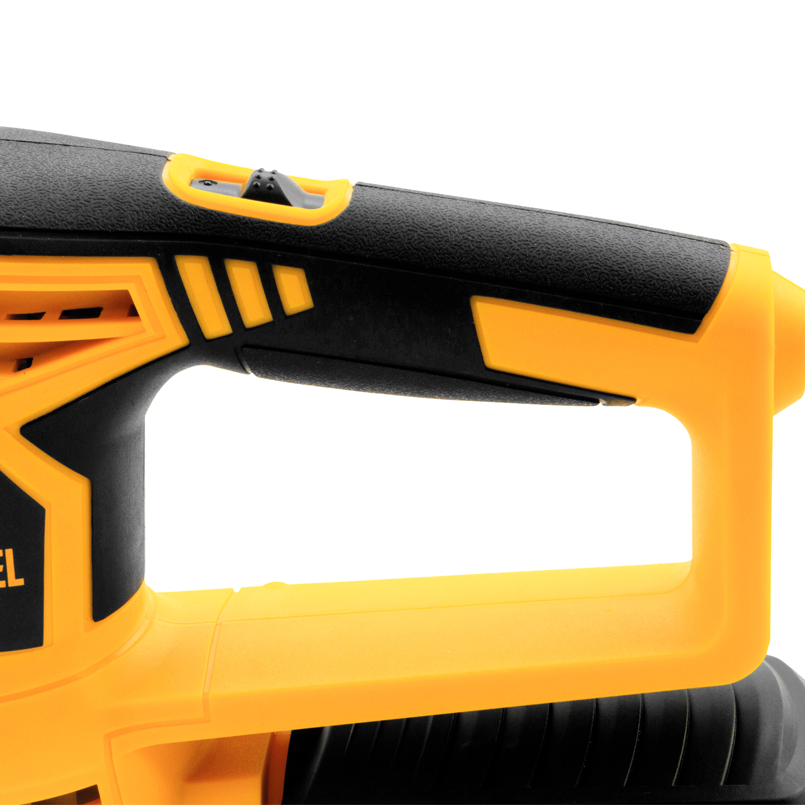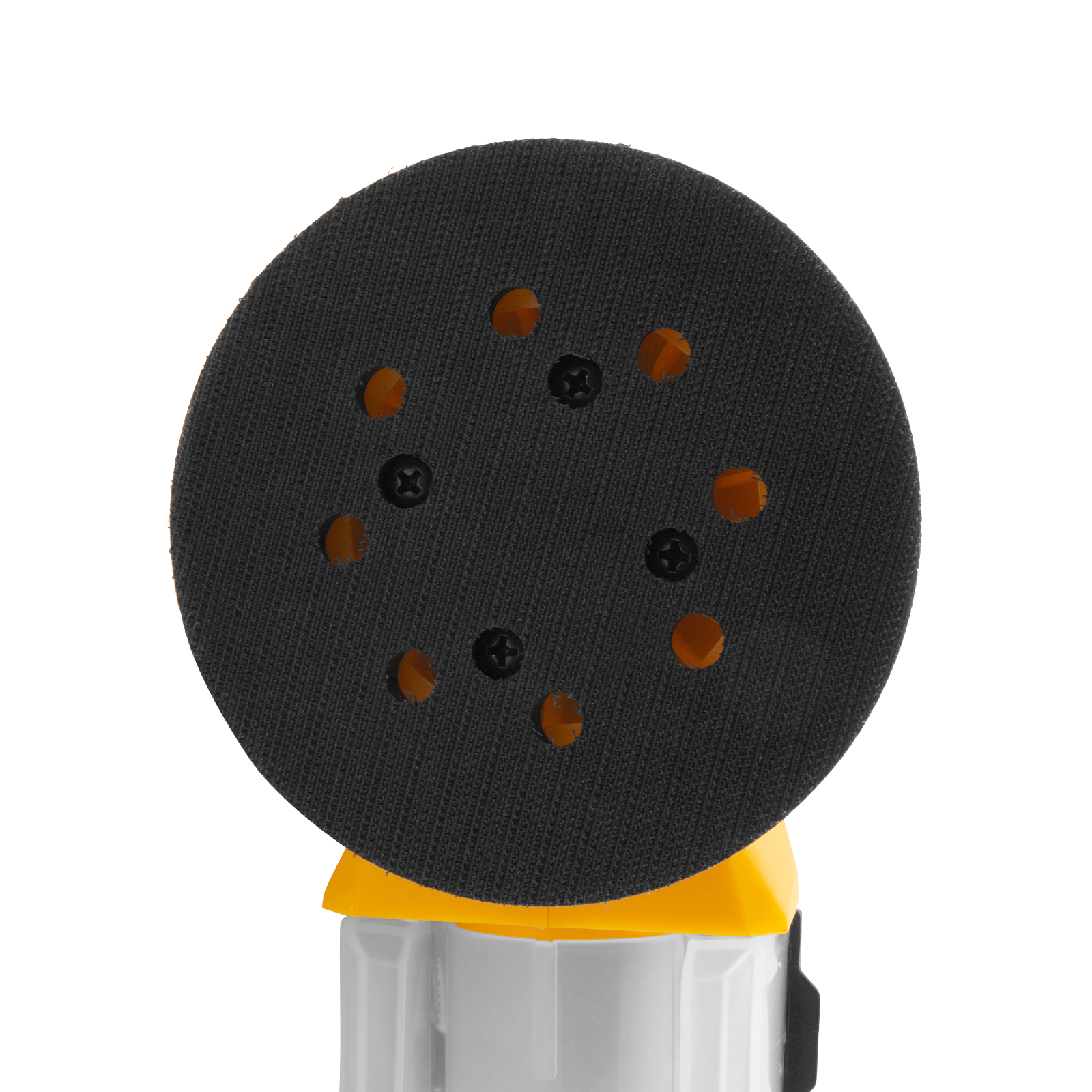 - Легкая замена шлифлиста — крепление velcro («липучка») позволяет быстро установить абразивный материал.