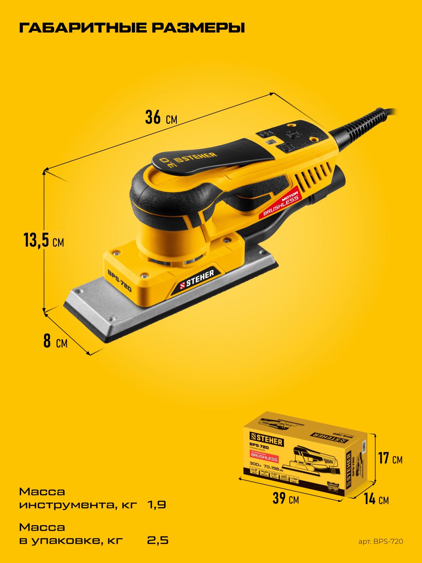 - Система крепления шлифовальной бумаги Velcro для быстрой и простой замены листов