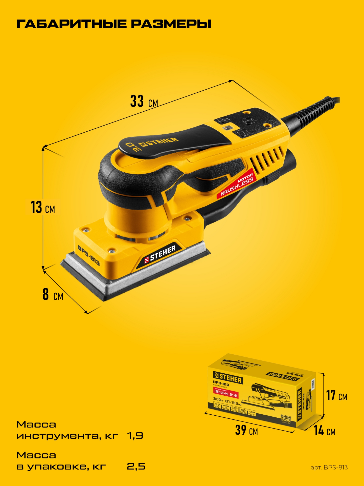 - Система крепления шлифовальной бумаги Velcro для быстрой и простой замены листов