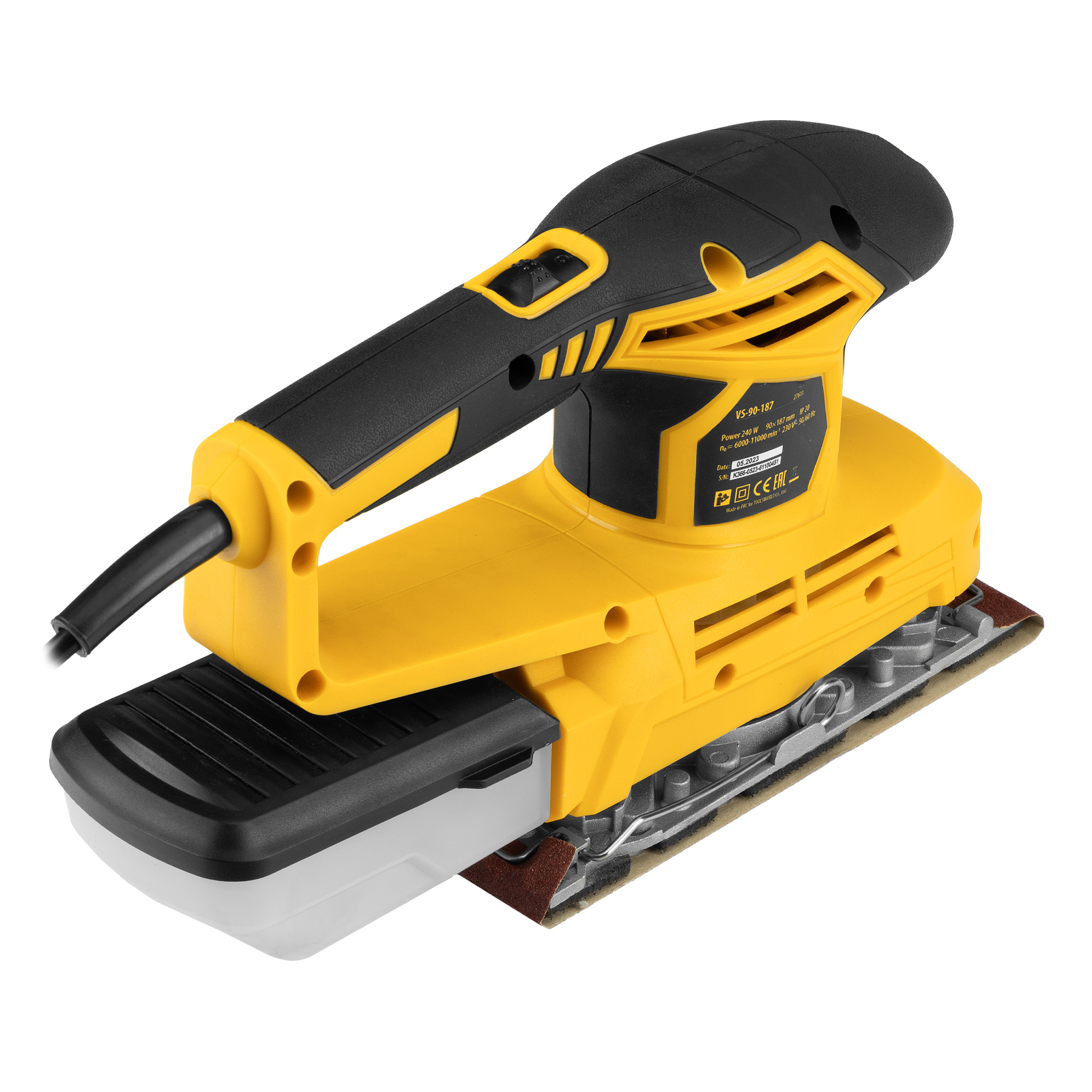 Вибрационная плоскошлифовальная машина Denzel VS-90-187 мощностью 240 Вт, с частотой колебаний подошвы 6000-11000 об/мин, подходит для сухого шлифования, зачистки и полировки поверхностей. Регулировка частоты колебаний подошвы 6000-11000 об/мин позволяет выбрать оптимальный режим работы. Размер рабочей поверхности составляет 90 х 187 мм, ход платформы — 1,6 мм, благодаря чему машина эффективно справляется с обработкой больших поверхностей.