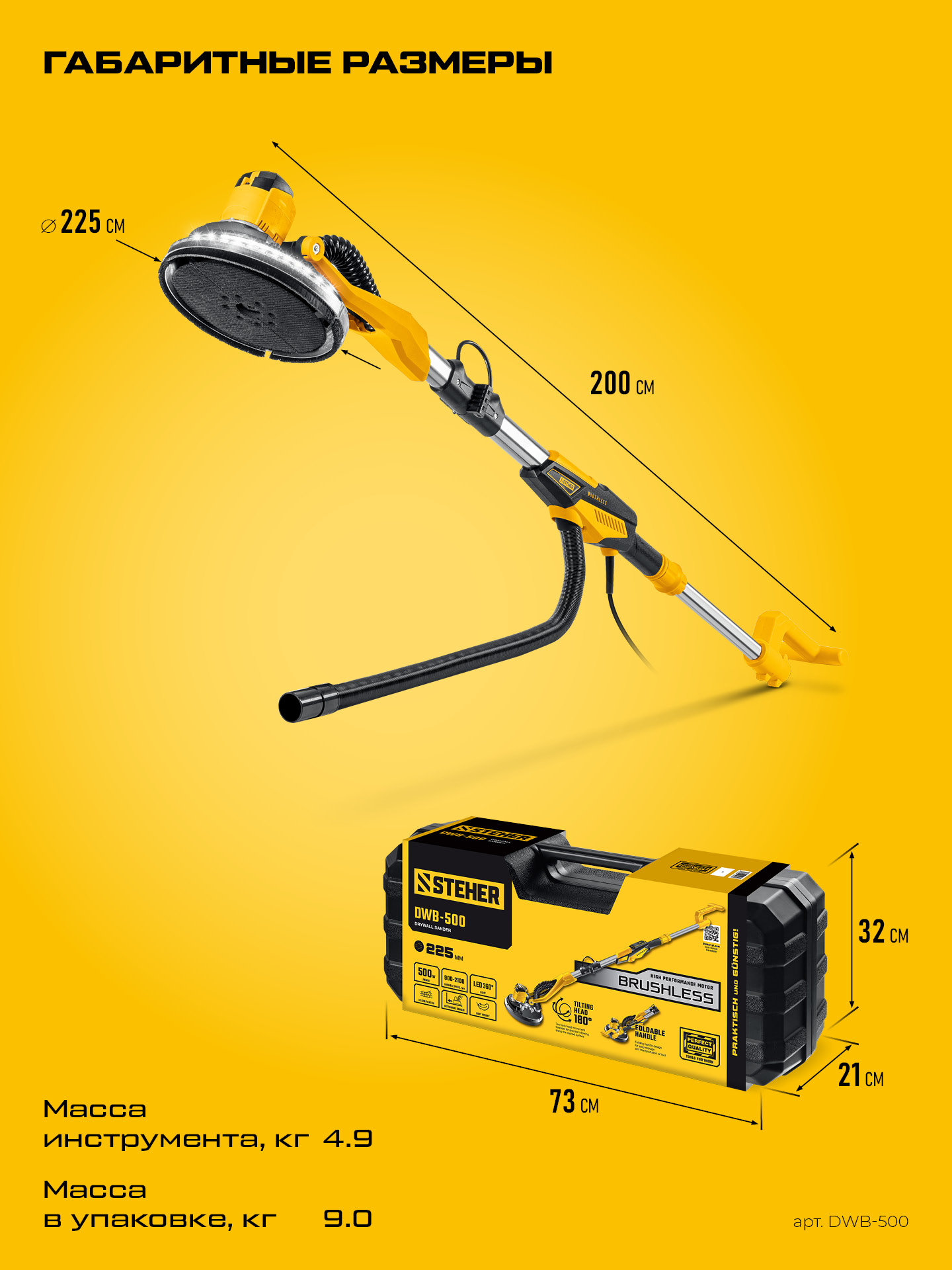 - защита от перегрузки предохраняет оператора и изделие - Диаметр основания 225 мм ускоряет обработку больших поверхностей