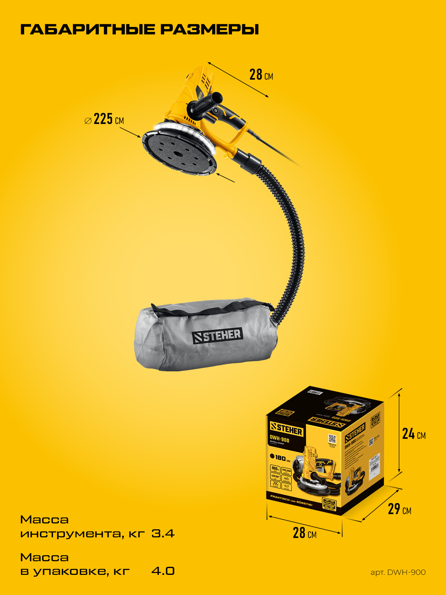 Ручной инструмент для работы с различными поверхностями. За счет регулировки оборотов подходит для обработки разных материалов (бетон, гипс, штукатурка, дерево). Обеспечивает минимальное количество пыли при работе благодаря возможности подключения пылесоса или принудительного отвода пыли в мешок