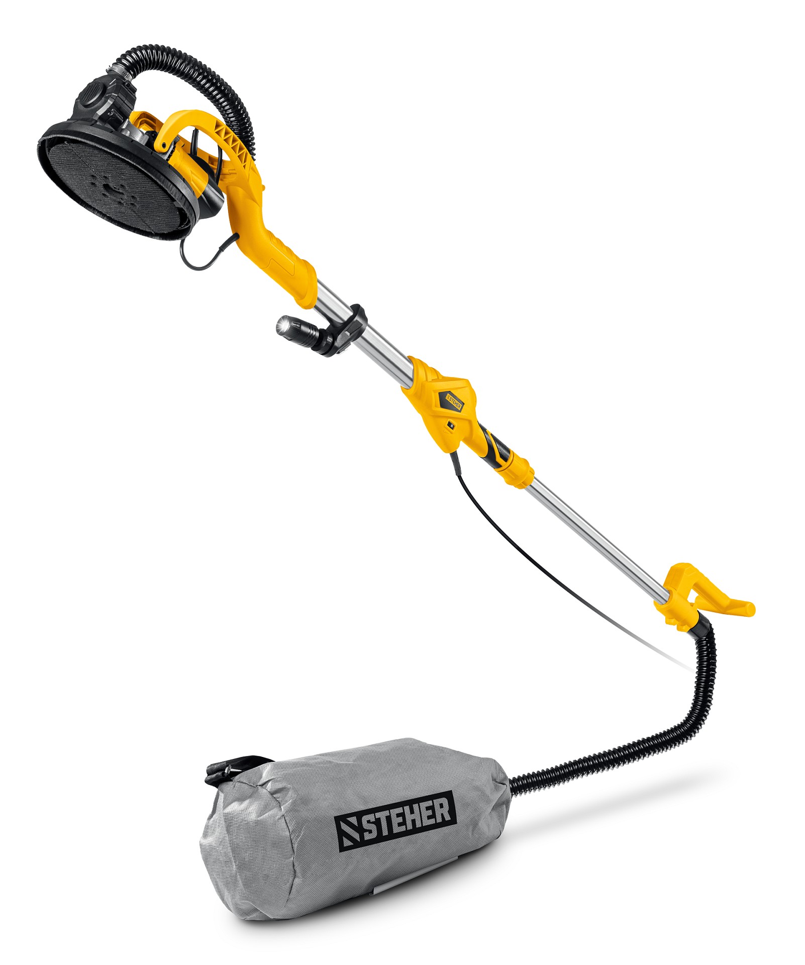 Машина шлифовальная для стен (жираф) - незаменимый инструмент для обработки как горизонтальных, так и вертикальных поверхностей. Раздвижная рукоятка позволяет отрегулировать инструмент под свой рост и дотянуться во все точки без лестницы. Минимальное количество пыли при работе за счет возможности подключения пылесоса или принудительного отвода пыли в мешок
