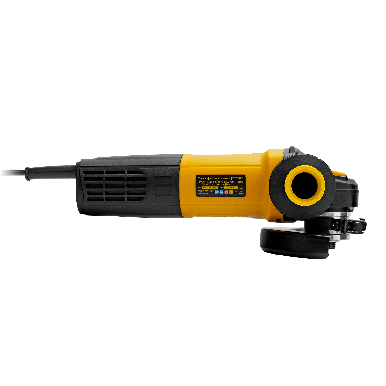 Угловая шлифовальная машина Denzel AG125-1500 26907 мощностью 1500 Вт совместима с оснасткой диаметром 125 мм, система электронной регулировки позволяет устанавливать оптимальную частоту вращения шпинделя в диапазоне 3000-11000 об/мин. Инструмент используется для резки и шлифовки различных материалов, а также при выполнении зачистных работ.