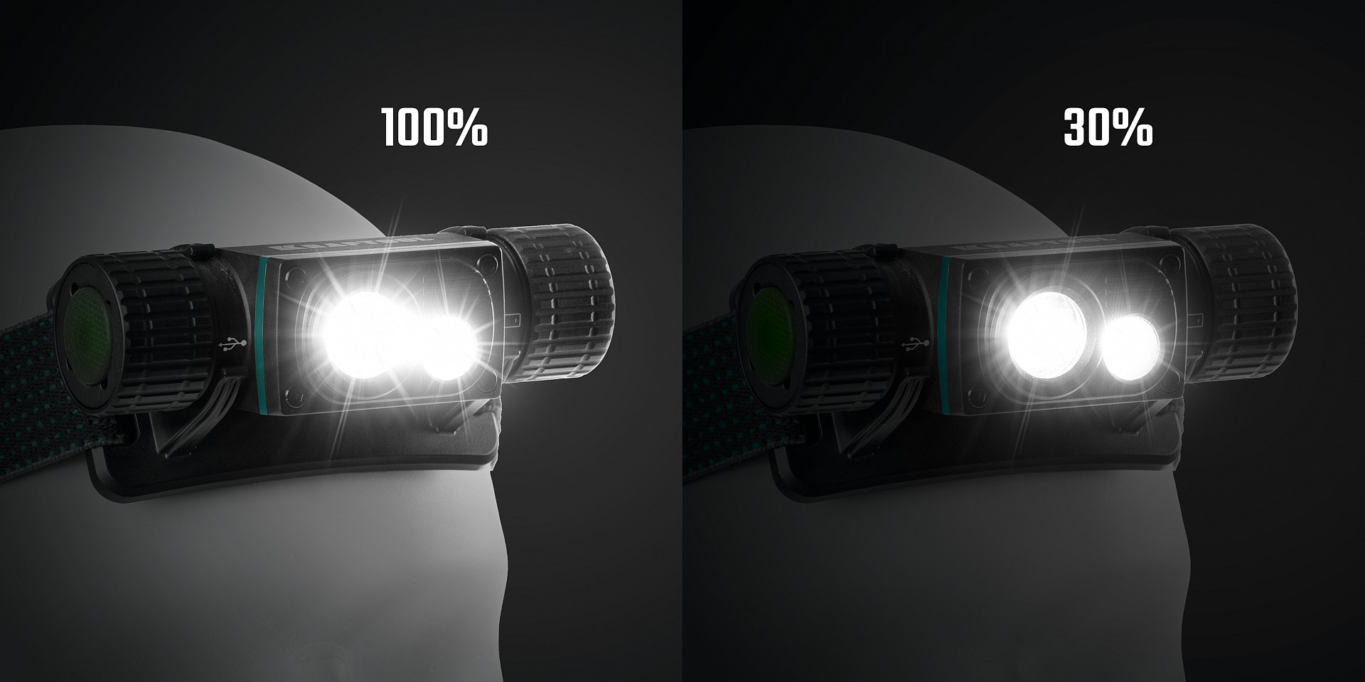- Сверхмощный световой поток 1000 лм в режиме TURBO,