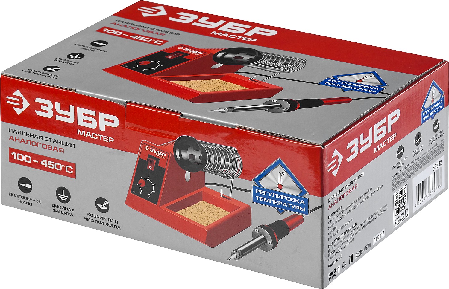 Благодаря продуманной системе управления, паяльные станции ЗУБР позволяют быстро илегко выполнять работы любой сложности, как в профессиональной мастерской, так и в домашних условиях. Антистатическая защита обеспечивает сохранность высокочувствительных радиоэлементов, значительно повышает безопасность работ ипродлевает срок службы оборудования. Предназначены для работы с электронными платами при монтаже/демонтаже компонентов, а также для пайки проводников, отпайки илужения.