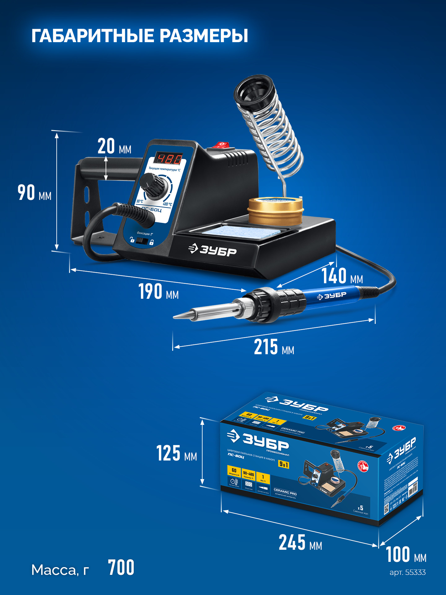 Благодаря продуманной системе управления, паяльные станции ЗУБР позволяют быстро илегко выполнять работы любой сложности, как в профессиональной мастерской, так и в домашних условиях. Антистатическая защита обеспечивает сохранность высокочувствительных радиоэлементов, значительно повышает безопасность работ ипродлевает срок службы оборудования. Предназначены для работы с электронными платами при монтаже/демонтаже компонентов, а также для пайки проводников, отпайки илужения.