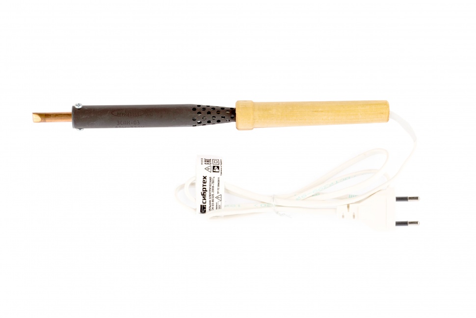Электрический паяльник Сибртех ЭПСН-03-80/220 91310 с деревянной ручкой используется для пайки электросхем, проводов, небольших деталей. Мощность инструмента составляет 80 Вт, поэтому он успешно справляется с поставленными задачами. Паяльник используют для ремонта бытовой и радиотехники, а также во время обслуживания автомобилей. Удобная эксплуатация — медное жало быстро нагревается, при необходимости его легко можно заменить. Устойчивость к механическим воздействиям — нагревательным элементом является нихромовая спираль. Долговечность — деревянная рукоятка не деформируется при нагревании. Длительная работа без ощущения усталости — удобная рукоятка надежно ложится в руку.