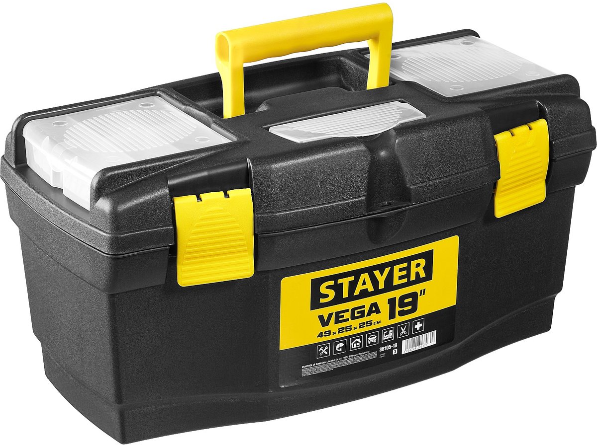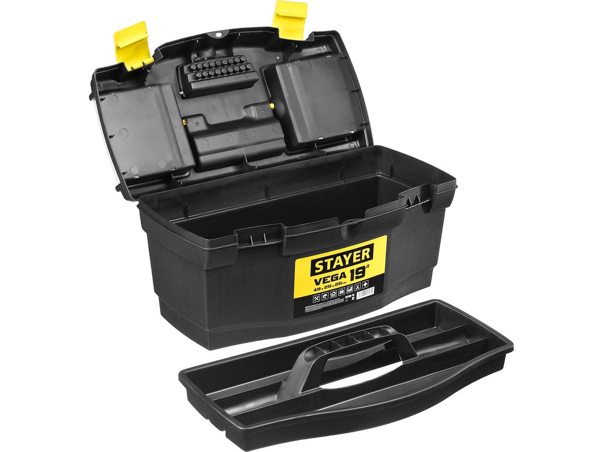 Ящик для инструмента "VEGA-18" пластиковый, STAYER 38105-18. Размер: 490 х 250 х 250 мм, 19".