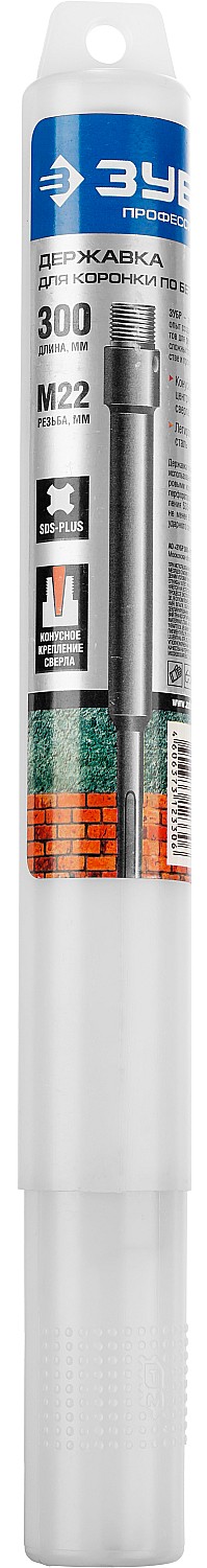 Державка ЗУБР для буровой коронки с хвостовиком SDS Plus, L-300 мм, резьба М22, конусное крепление центрирующего сверла.