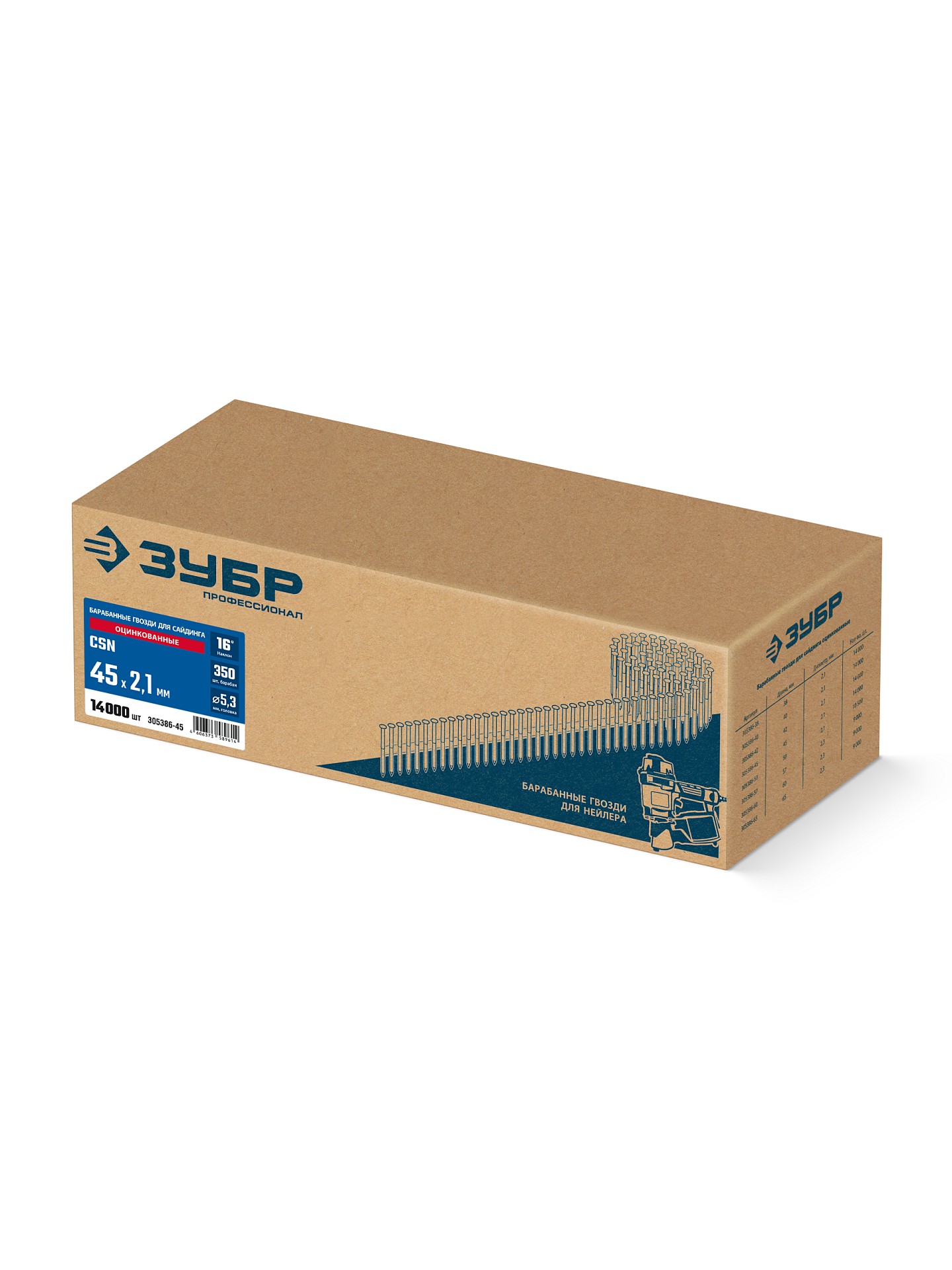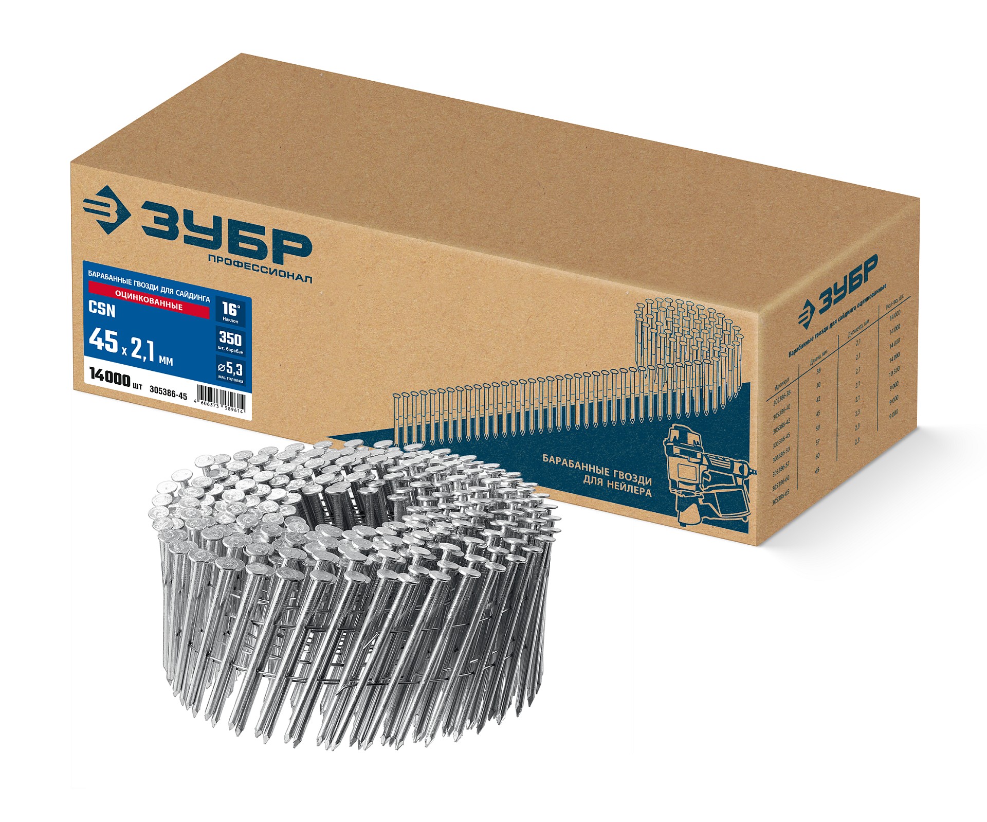 Барабанные гвозди для сайдинга оцинкованные CSN 45 х 2.1 мм 14000 шт Зубр 305386-45 фото