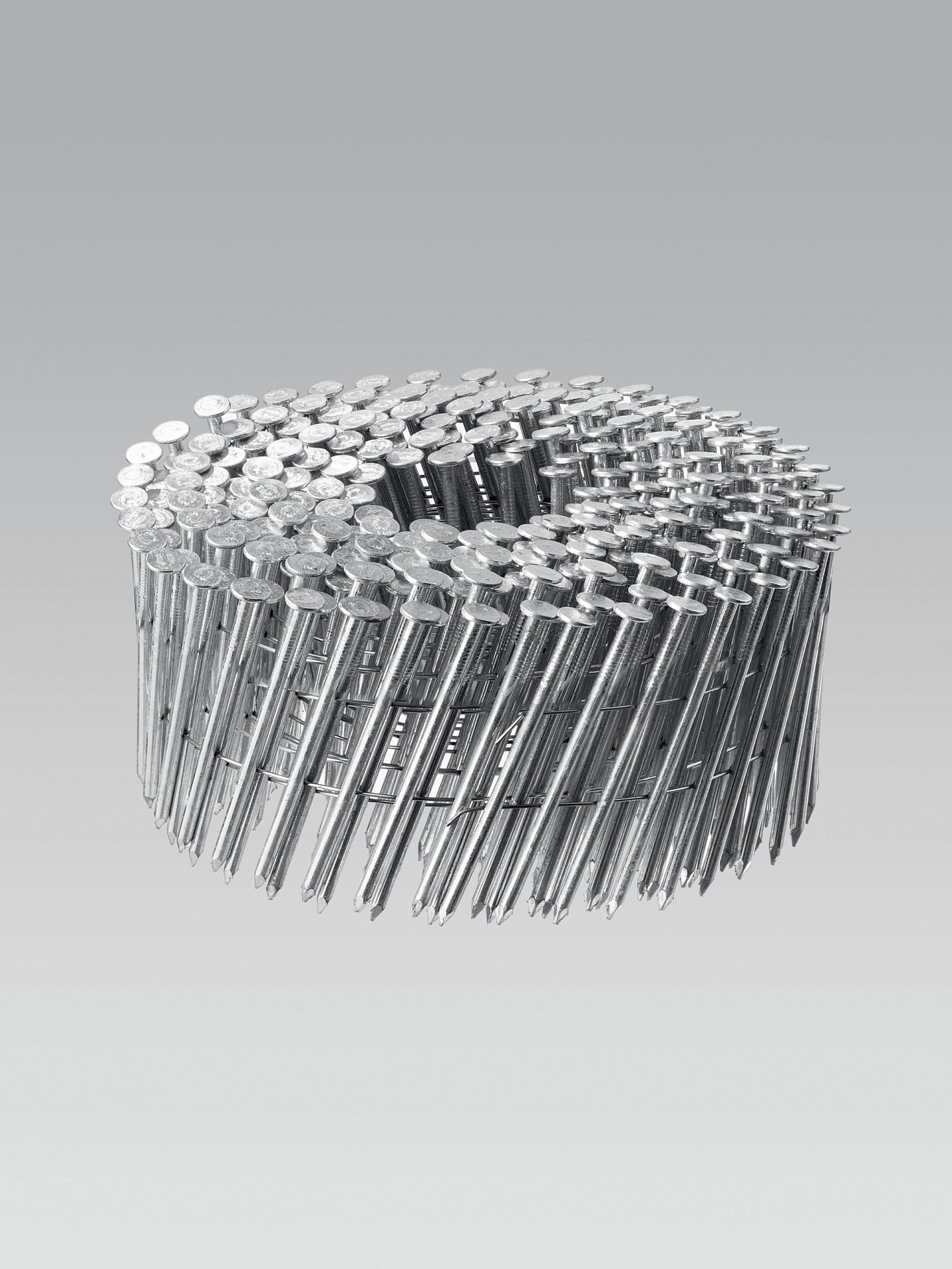 Барабанные гвозди для сайдинга соединены в обойму под углом 16° и забиваются при помощи гвоздезабивного пистолета (нейлера). Уменьшенный диаметр гвоздя оптимален для крепления сайдинга. Использование нейлера обеспечивает высокую скорость монтажа и удобство в работе.