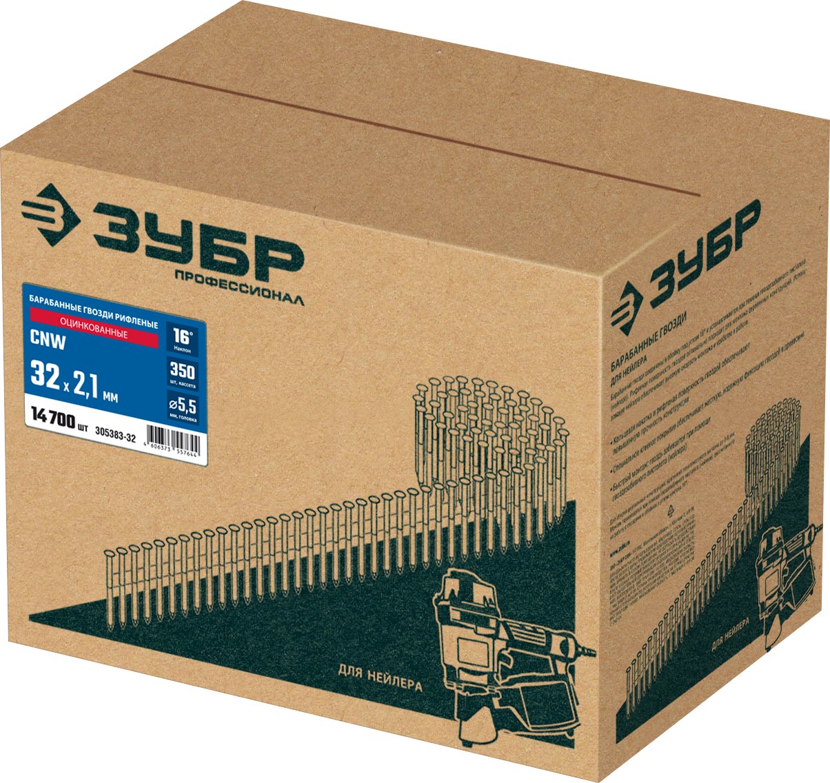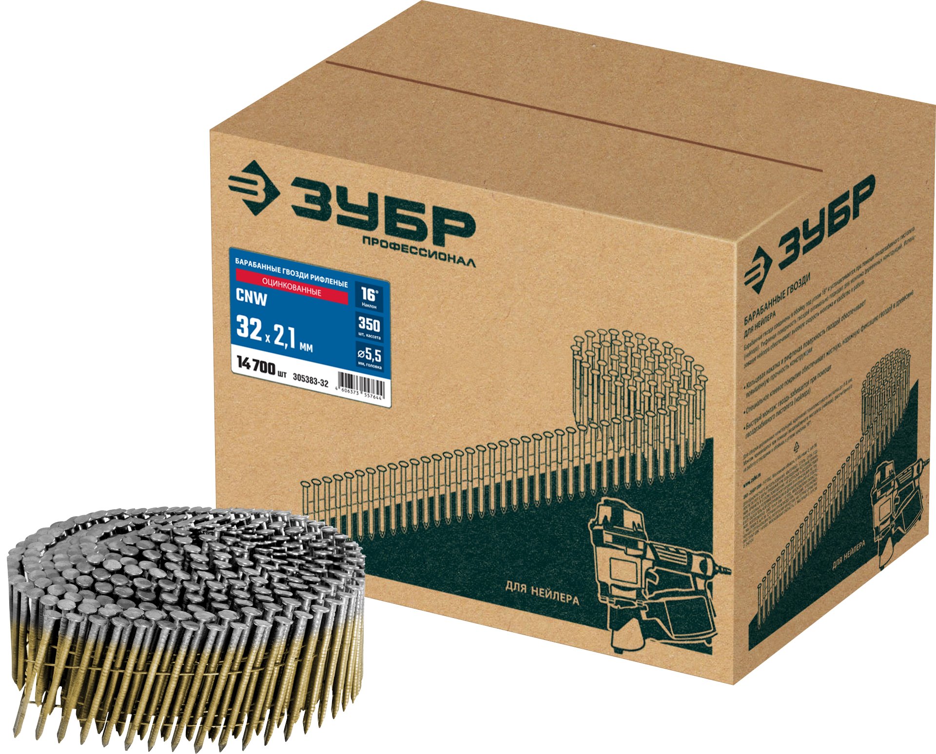 Барабанные гвозди соединены в обойму под углом 16° и забиваются при помощи гвоздезабивного пистолета (нейлера). Рифленая поверхность гвоздей оптимально подходит для монтажа деревянных конструкций. Использование нейлера обеспечивает высокую скорость монтажа и удобство в работе.