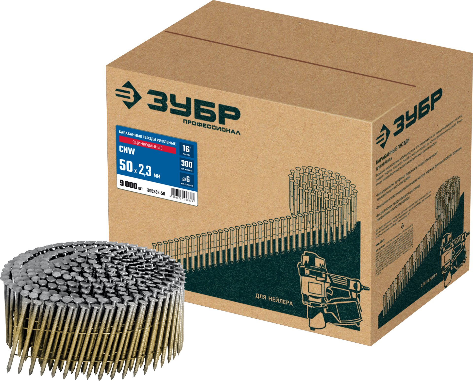 Барабанные гвозди рифленые оцинкованные CNW 50 х 2.3 мм 9000 шт Зубр 305383-50