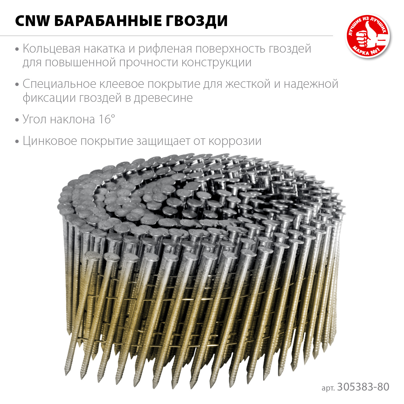 Для сборки деревянных конструкций, крепления тонколистового металла до 0.9 мм. В каркасном домостроении используются для сборки каркаса дома и установки черновых полов. Монтаж производится при помощи гвоздезабивного пистолета (нейлера) ЗУБР CNW-90 (арт. 31914), ЗУБР CNW-100 (арт. 31915) или аналогичного, рассчитанного на работу с барабанными гвоздями с углом наклона 16 град.