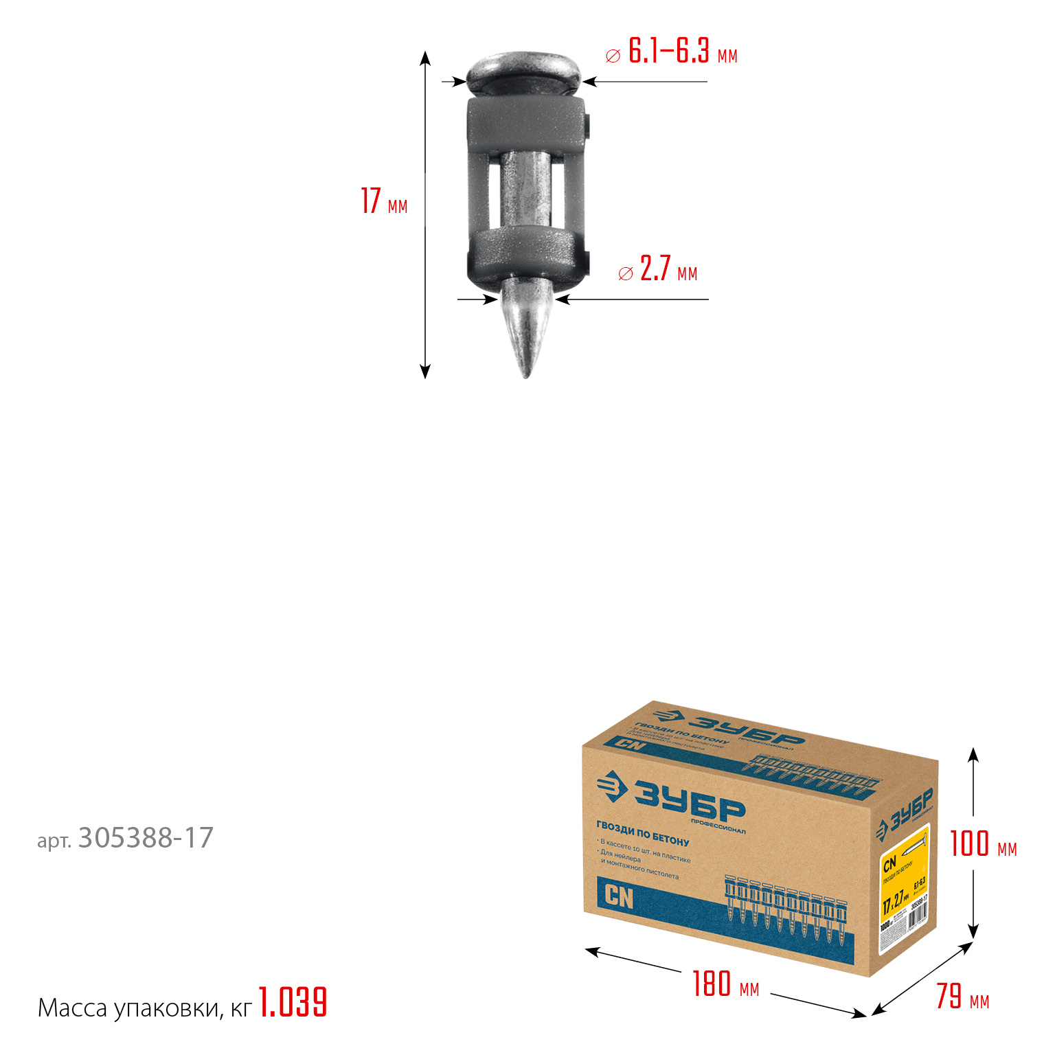 Гвозди по бетону соединены в кассету и забиваются при помощи газового или пневматического гвоздезабивного пистолета (нейлера). Необходимый размер гвоздя подбирается в зависимости от монтируемых материалов.