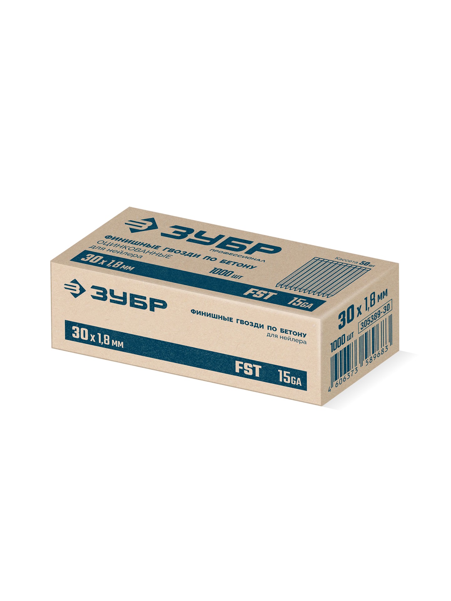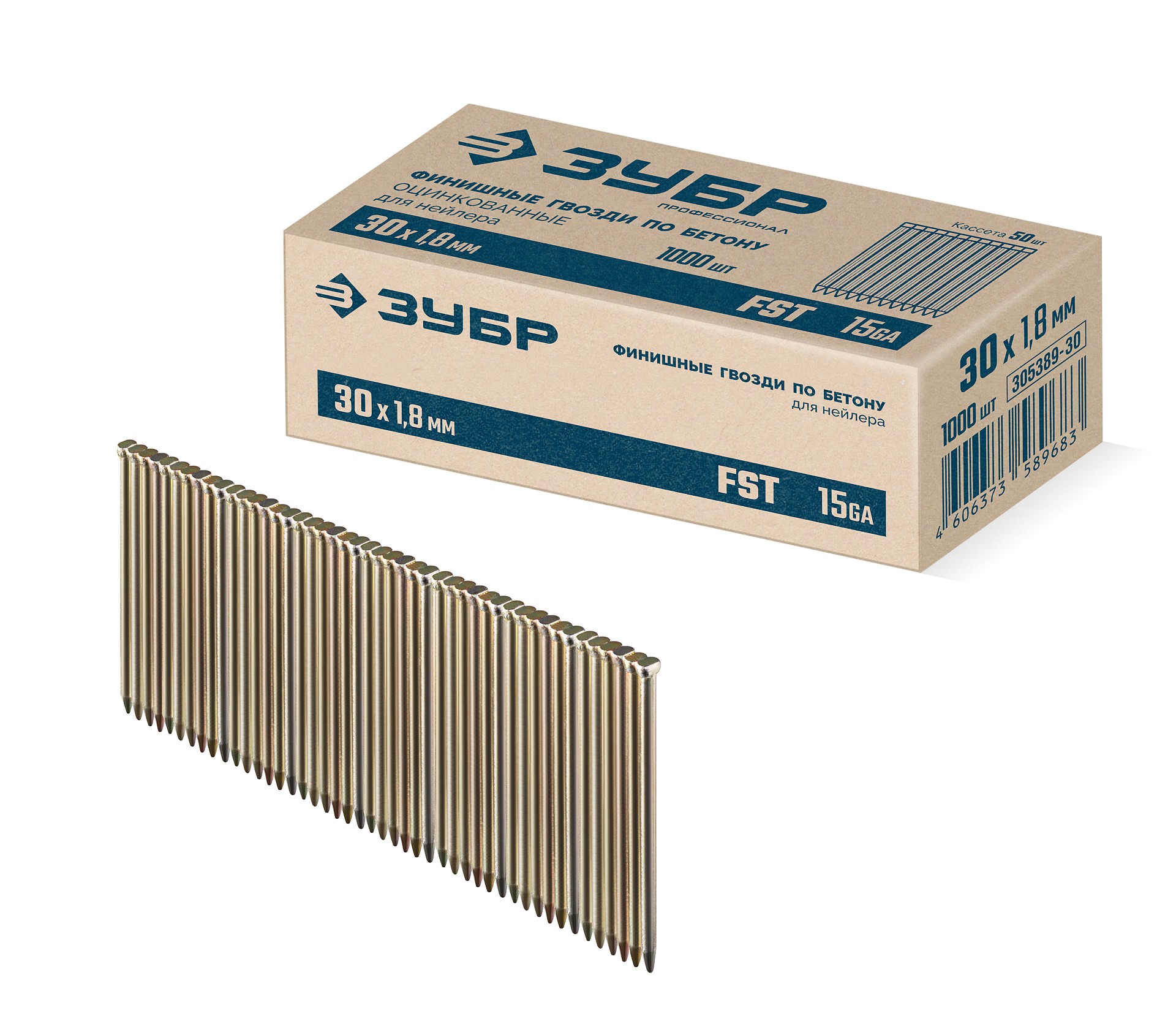 Реечные финишные гвозди по бетону оцинкованные калибр 15GA FST 30 х 1.8 мм 1000 шт Зубр 305389-30