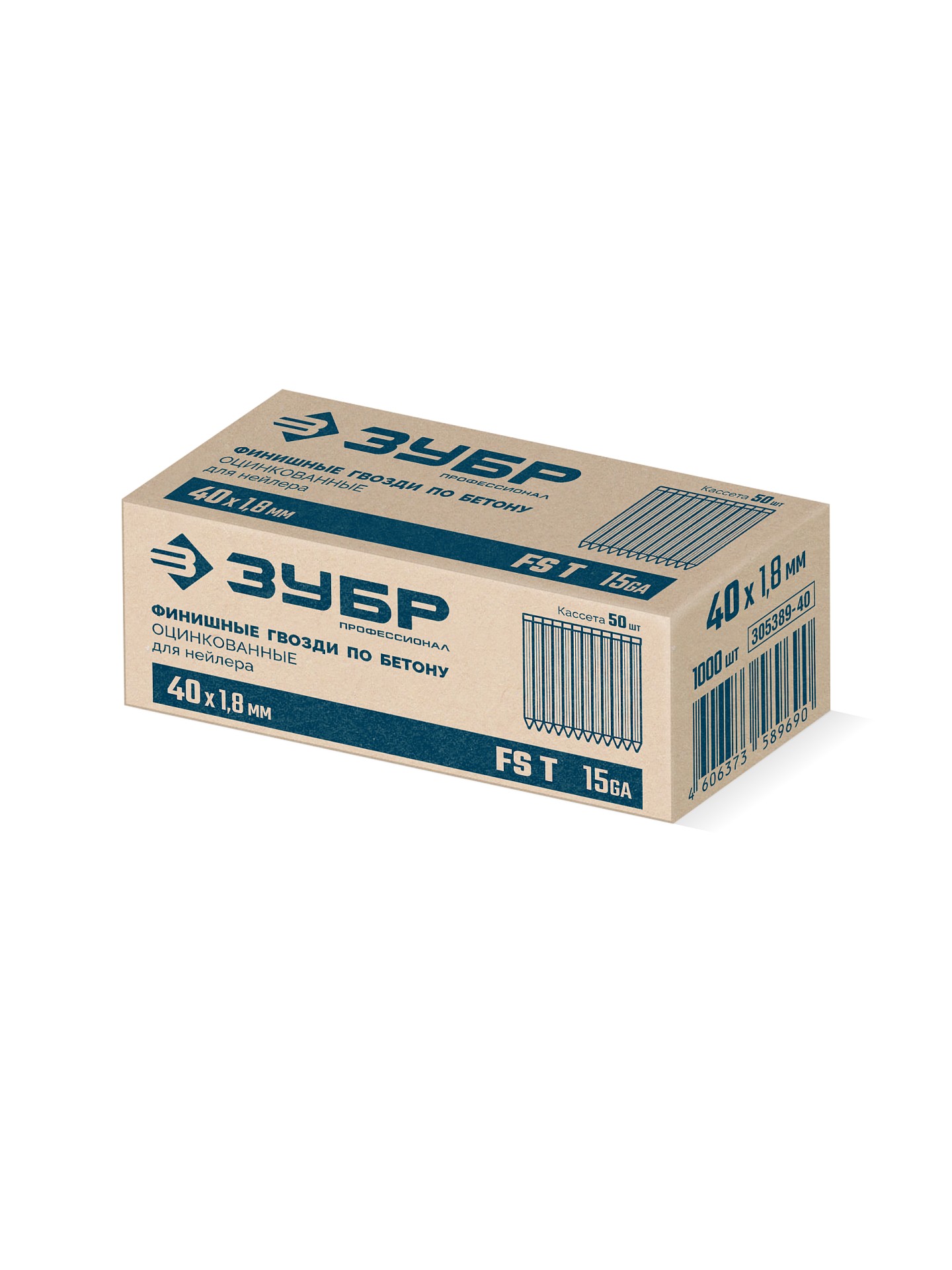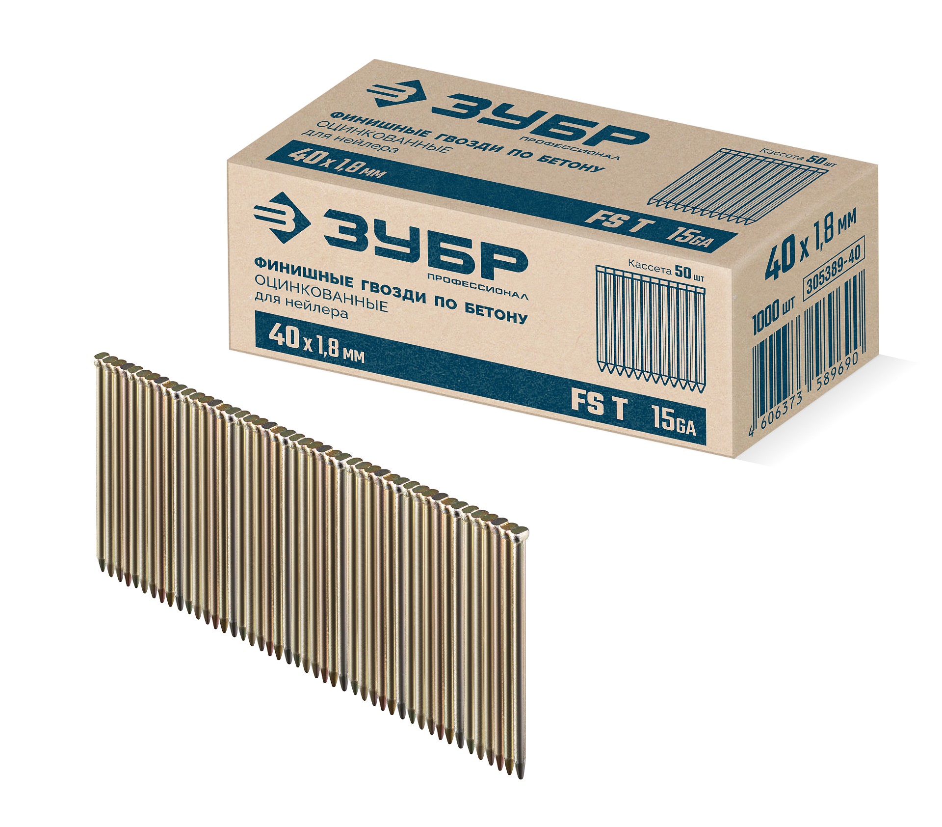 Реечные финишные гвозди по бетону оцинкованные калибр 15GA FST 40 х 1.8 мм 1000 шт Зубр 305389-40