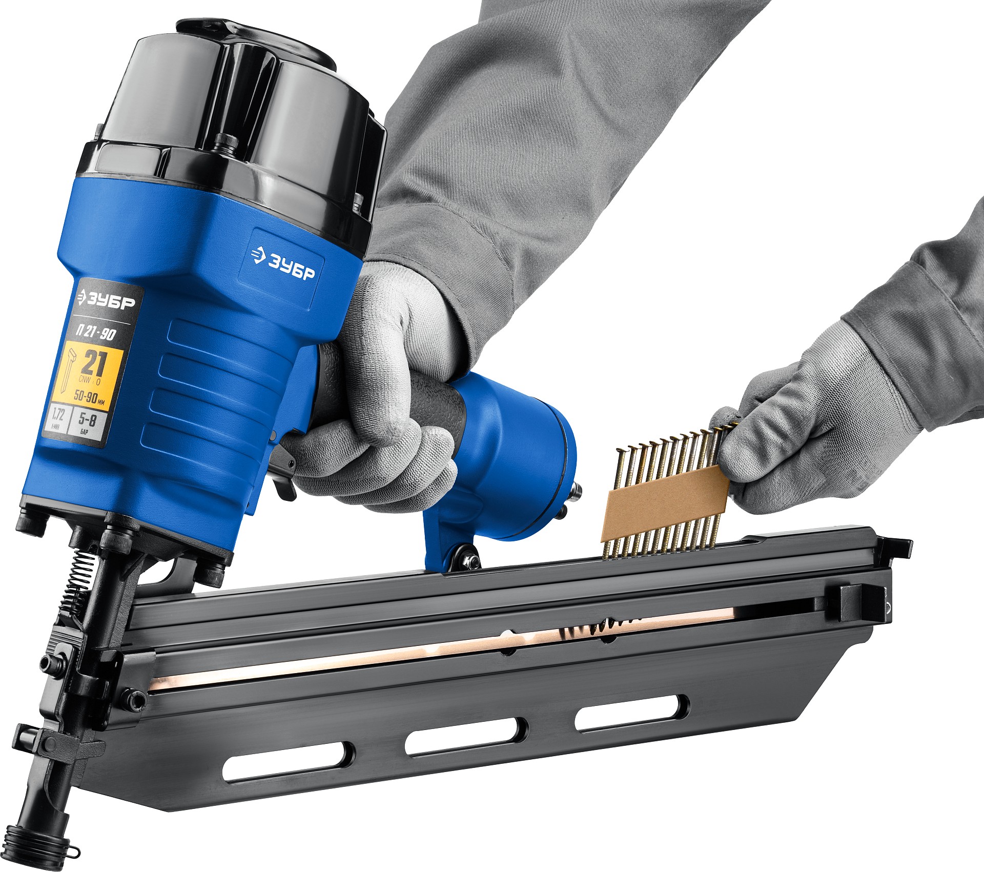 Для сборки деревянных конструкций, крепления тонколистового металла до 0.9 мм. В каркасном домостроении используются для сборки каркаса дома и установки черновых полов. Монтаж производится при помощи гвоздезабивного пистолета (нейлера) ЗУБР SN21-90 (арт. 31931), ЗУБР SN21-90A (арт. 31923) или аналогичного, рассчитанного на работу с гвоздями в кассетах с углом наклона 21 град. Во избежание повреждения кассеты на бумажной основе при установке в магазин нейлера не допускайте сильных ударов толкателя по кассете с гвоздями.