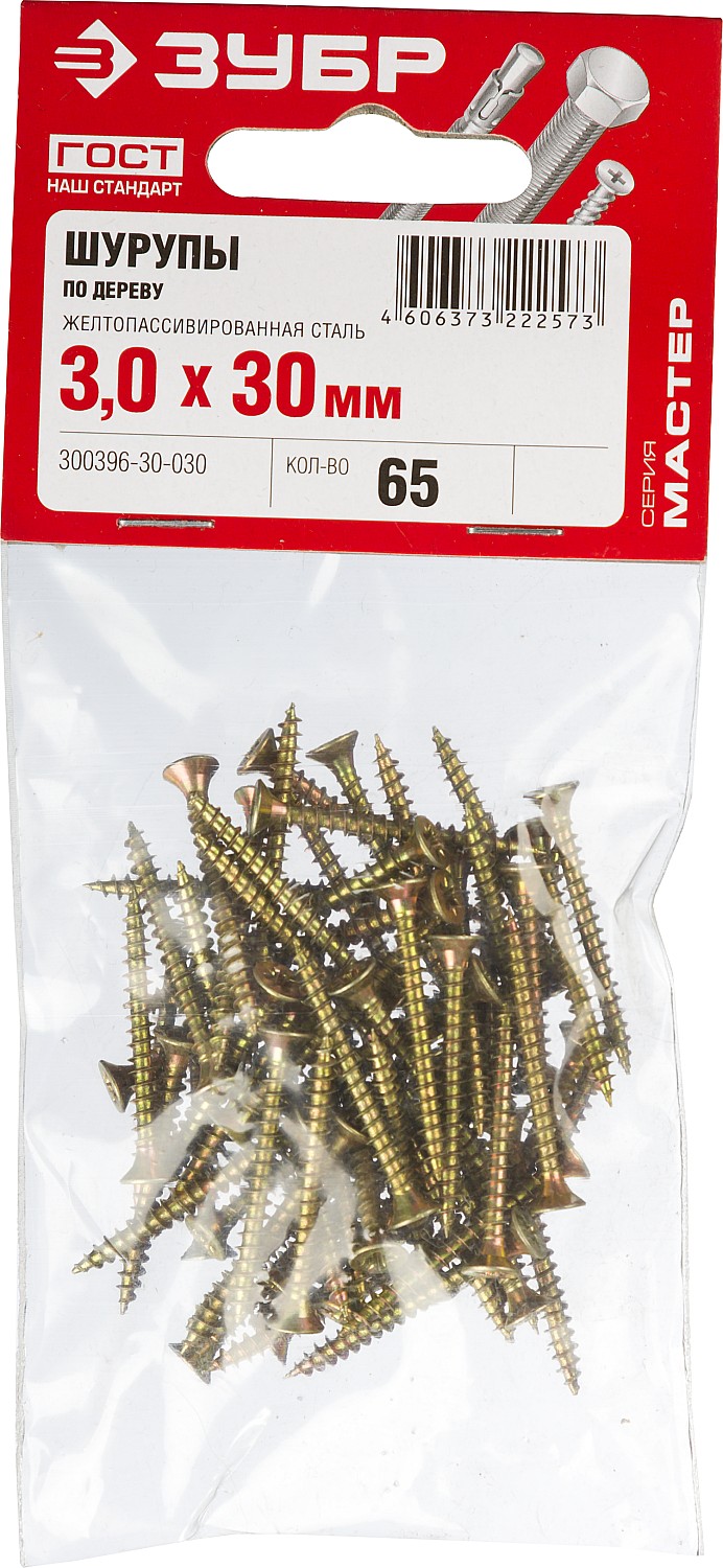 Саморезы СУ-Ж универсальные, 30 х 3.0 мм, 65 шт, желтый цинк, ЗУБР.