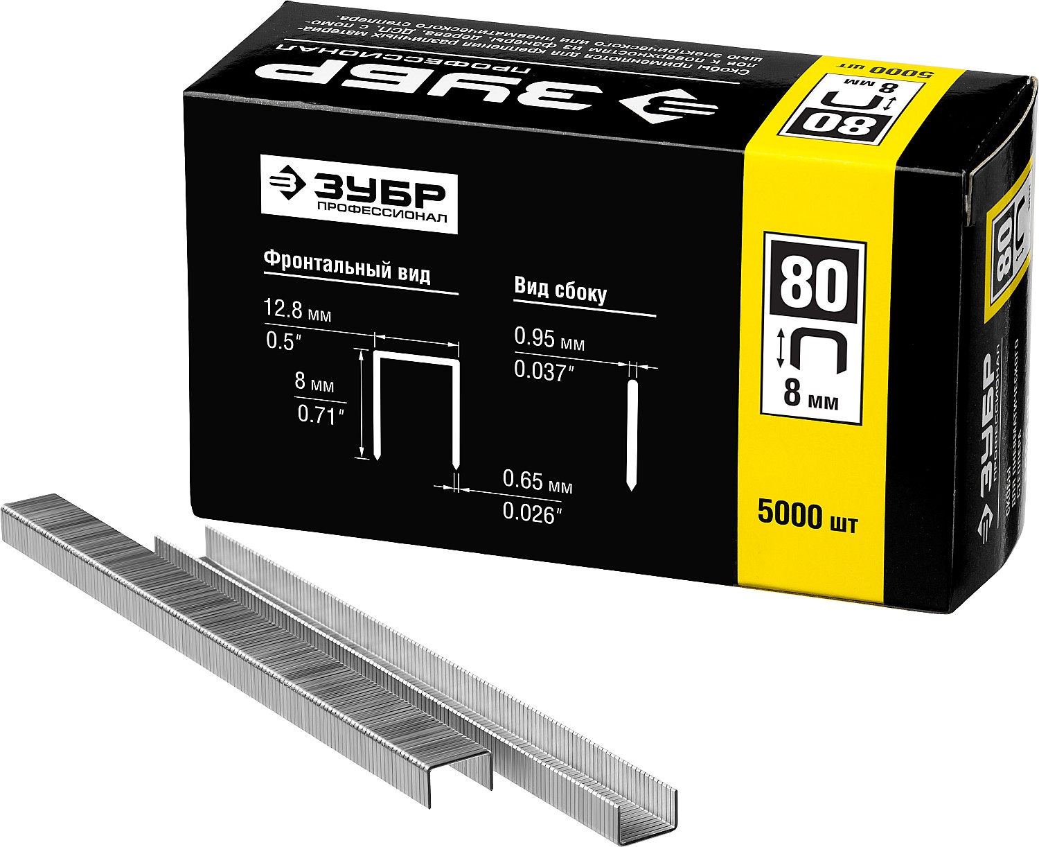 ЗУБР 8 мм скобы для степлера тонкие широкие тип 80, 5000 шт.