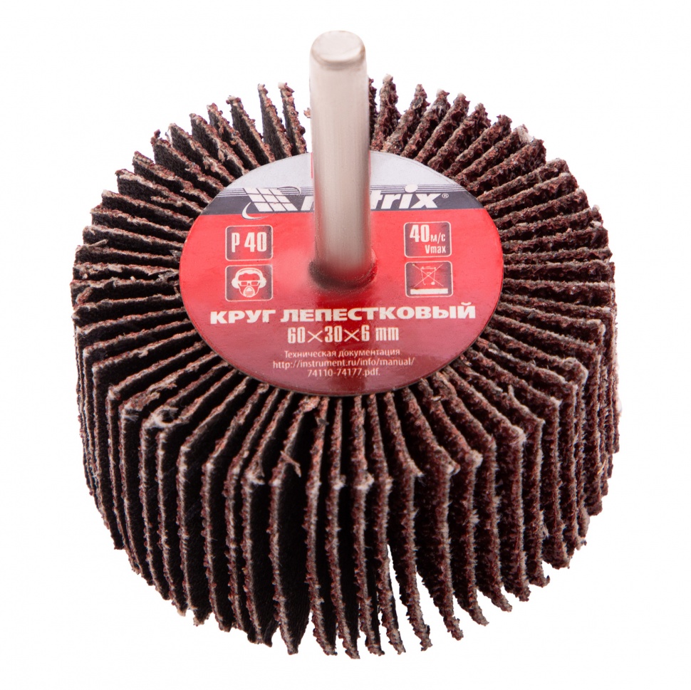 Лепестковый круг для дрели Matrix 74120, 60 х 30 х 6 мм, с зернистостью P 40, является оснасткой для дрелей и прямых шлифовальных машинок с посадочным гнездом 6 мм, рассчитанных на скорость до 8000 об/мин. Круг применяется при грубой обработке древесины, металла и других материалов. Крупнозернистый абразив P 40 эффективно снимает толстые слои краски и ржавчины, зачищает сварные швы, удаляет заусенцы.