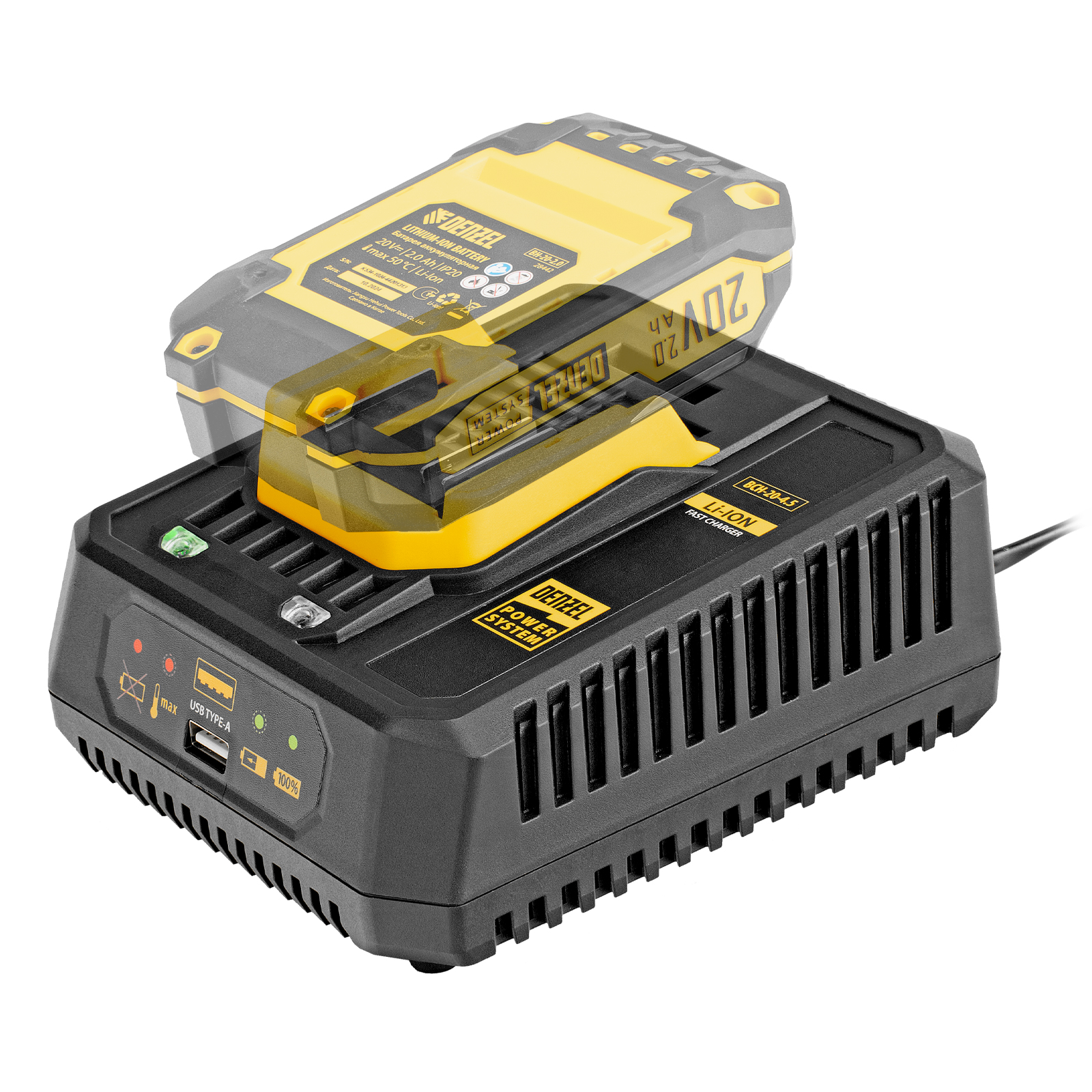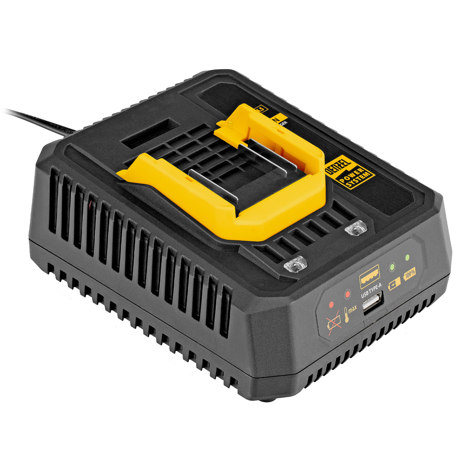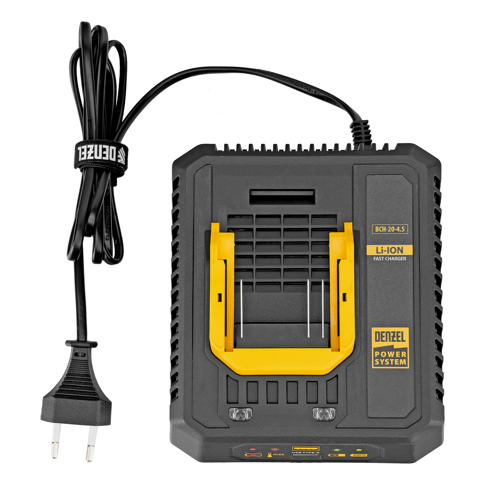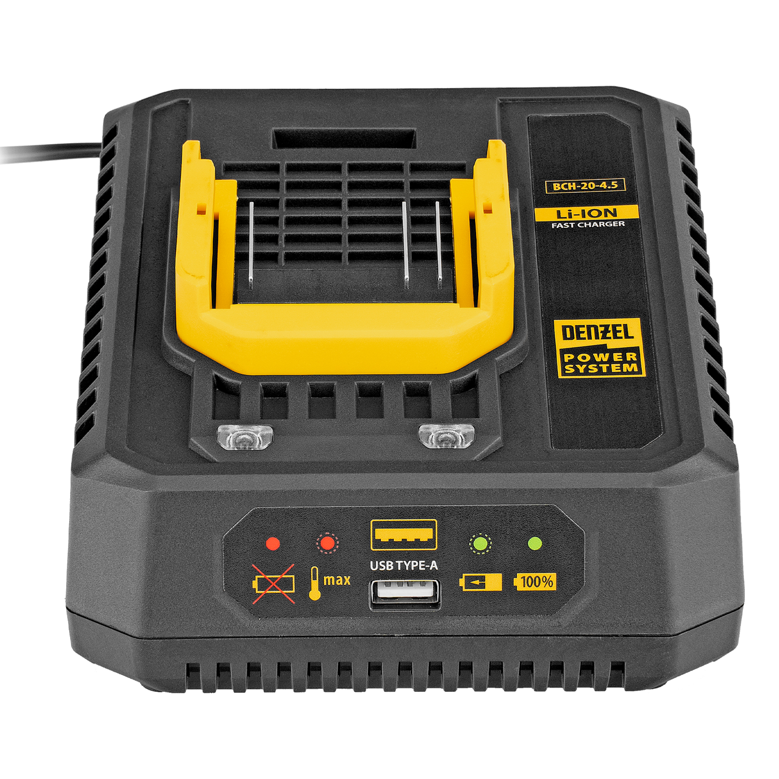 Зарядное устройство Denzel BCH-20-4.5 28457 предназначено для восстановления работоспособности Li-Ion аккумуляторов единой платформы Denzel Power System 20 V (артикулы 28442, 28444 и 28446). Поддерживает ток заряда 4,5 A. Обеспечивает ускоренную и полную зарядку, что позволяет быстро вернуться к работе с аккумуляторным инструментом. Длина кабеля составляет 1,2 м, поэтому зарядное устройство удобно подключать к розетке.