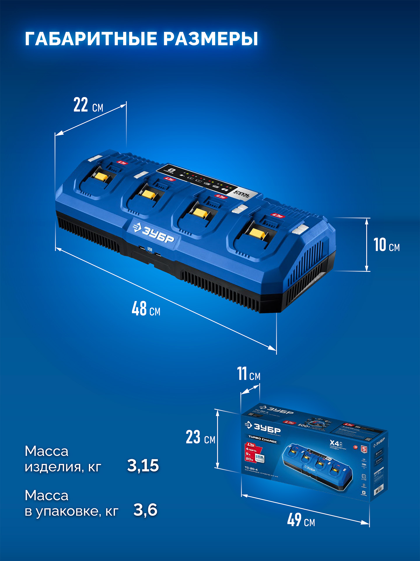 - Четыре порта для одновременной зарядки батарей ускоряет процесс заряда