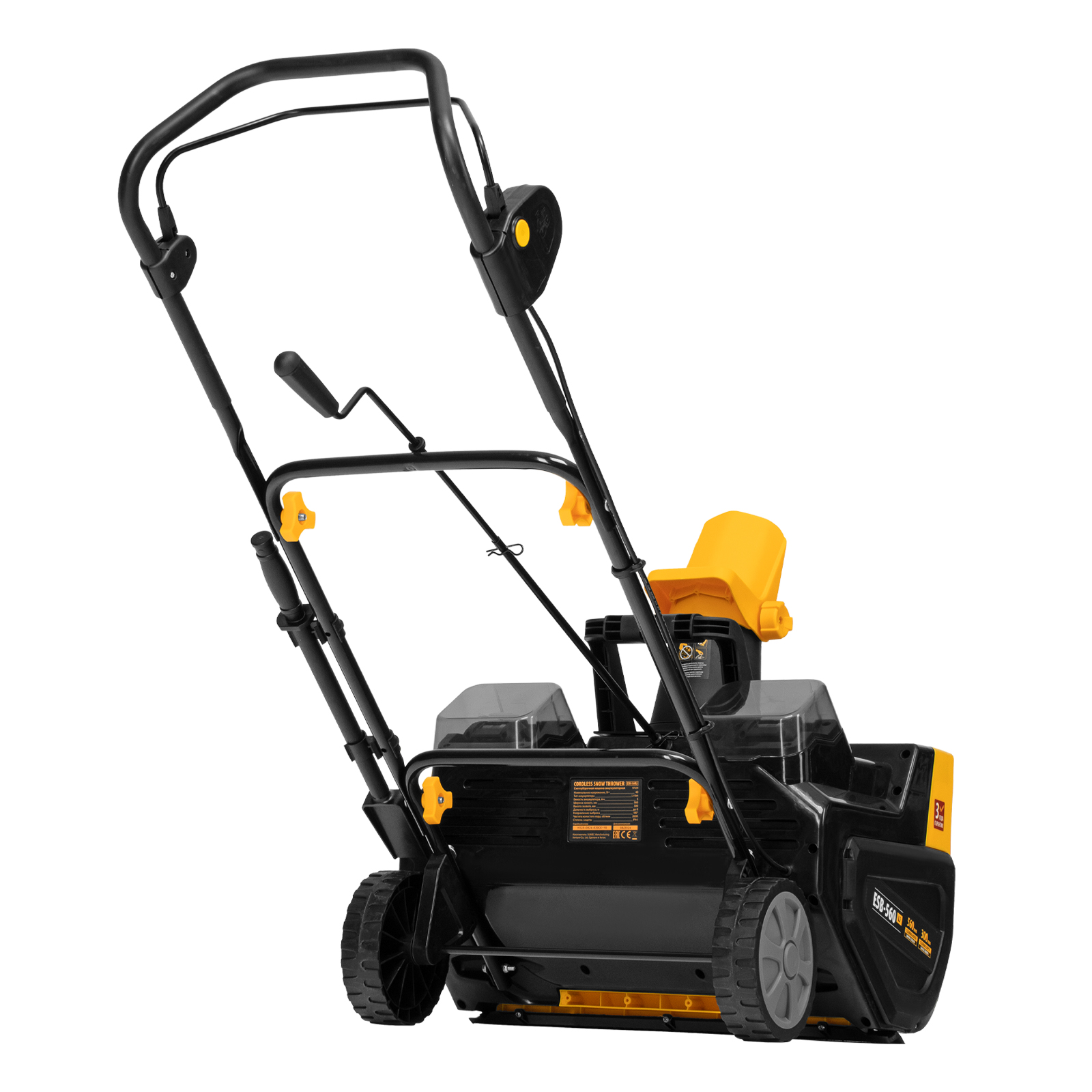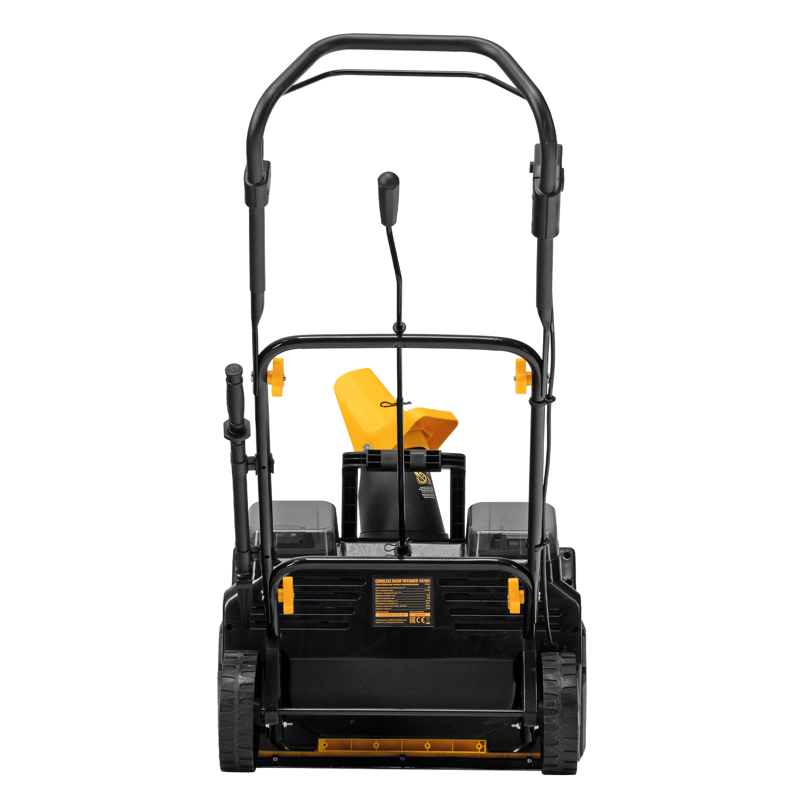 - Полная комплектация — снегоуборщик поставляется с 2 аккумуляторами, зарядным устройством и скребком для очистки желоба.