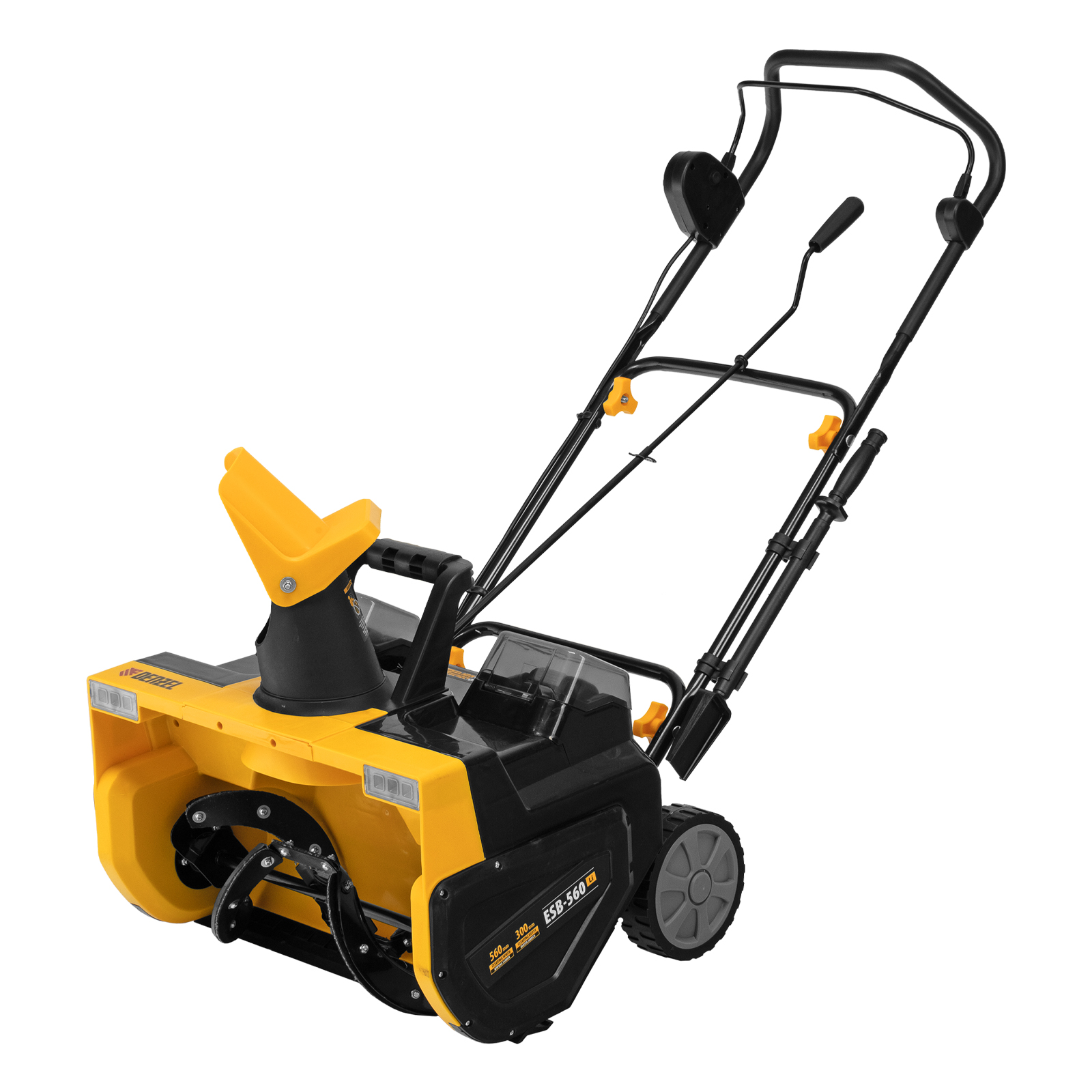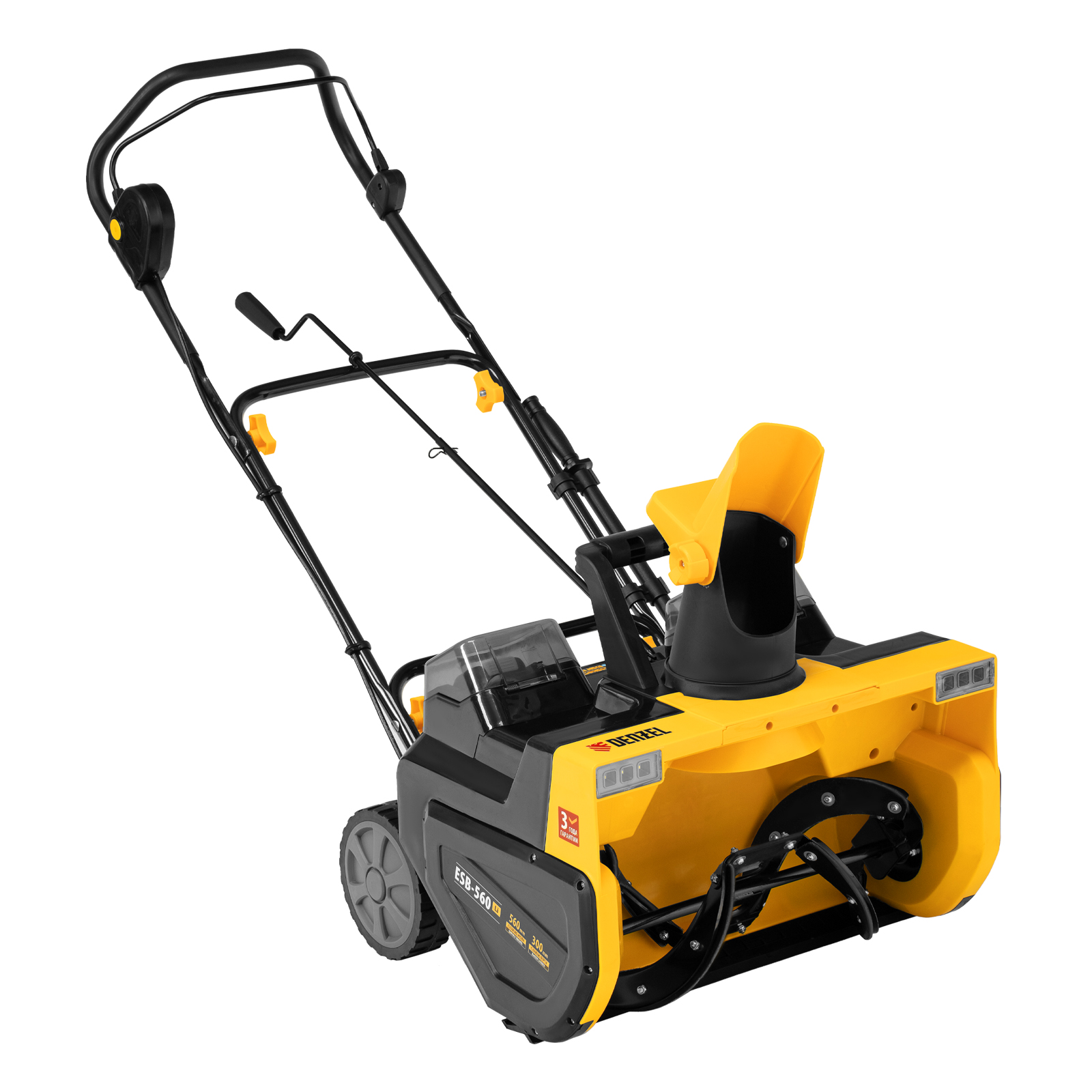 Аккумуляторная снегоуборочная машина Denzel ESB-560Li 97639 с металлическим шнеком и зарядным устройством (ЗУ) в комплекте работает от 2 аккумуляторов 5 А·ч суммарным напряжением 40 В и обеспечивает ширину захвата 560 мм. Дальность выброса снега регулируется при помощи дефлектора и достигает 8 м. Машина не зависит от наличия розетки, что позволяет работать даже на удаленных участках. Снегоуборщик поможет расчистить тротуар, дорожку на дачном участке, площадку перед гаражом или другую небольшую ровную территорию.
