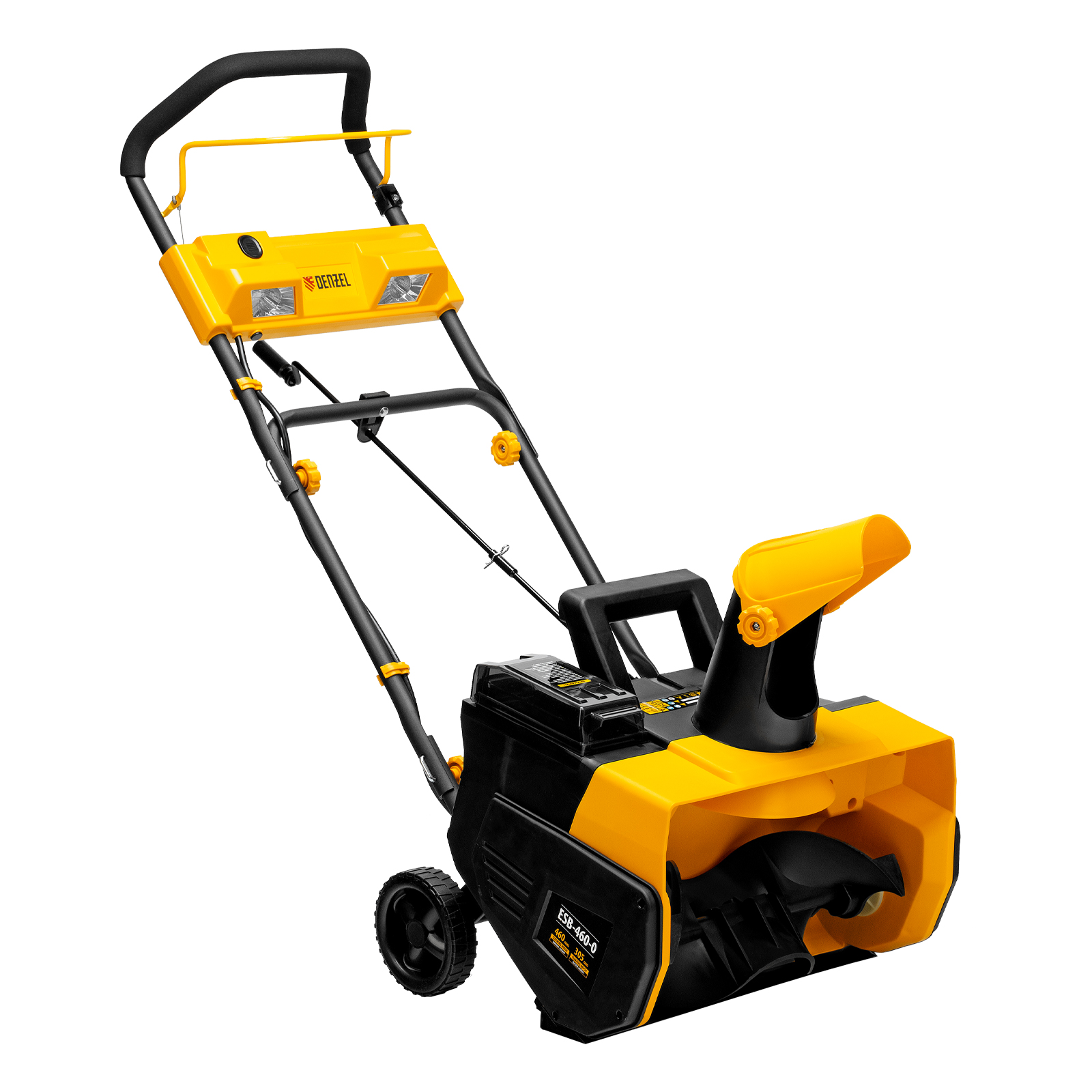 Аккумуляторная снегоуборочная машина Denzel ESB-460-0 97636 предназначена для очищения ровных поверхностей от снега, поможет расчистить дорожки, тротуары, придомовую территорию, парковку. Ширина захвата составляет 460 мм, что позволяет быстрее справляться с уборкой. Работает от 2 аккумуляторов Li-Ion с рабочим напряжением 18 В и емкостью 4 А·ч каждый.