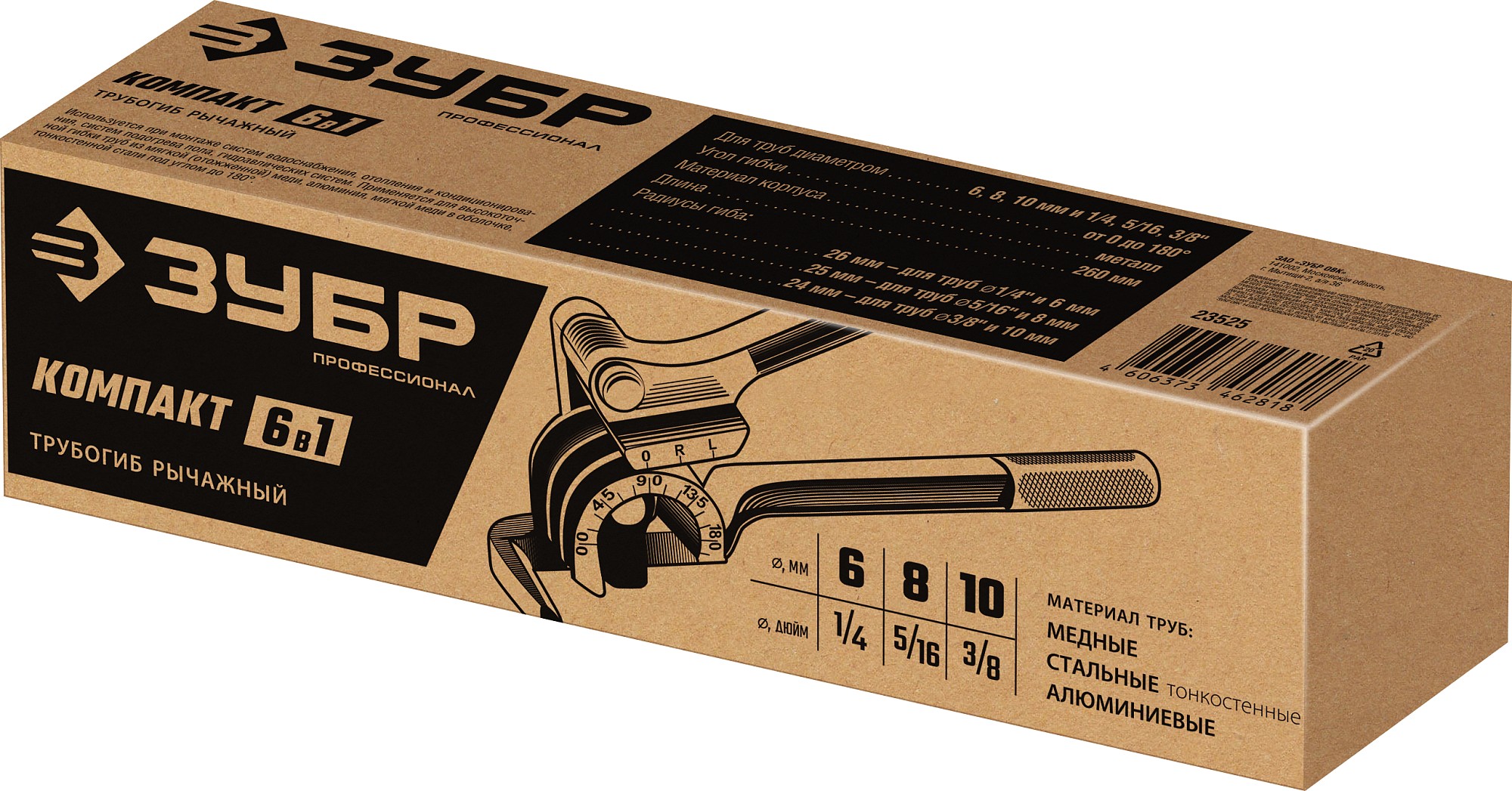 Профессиональный компактный трубогиб 6-в-1 для точной гибки труб из отожженой меди и алюминия под углом до 180°. Гибочная форма с указанием угла сгиба для точной гибки по размеру.