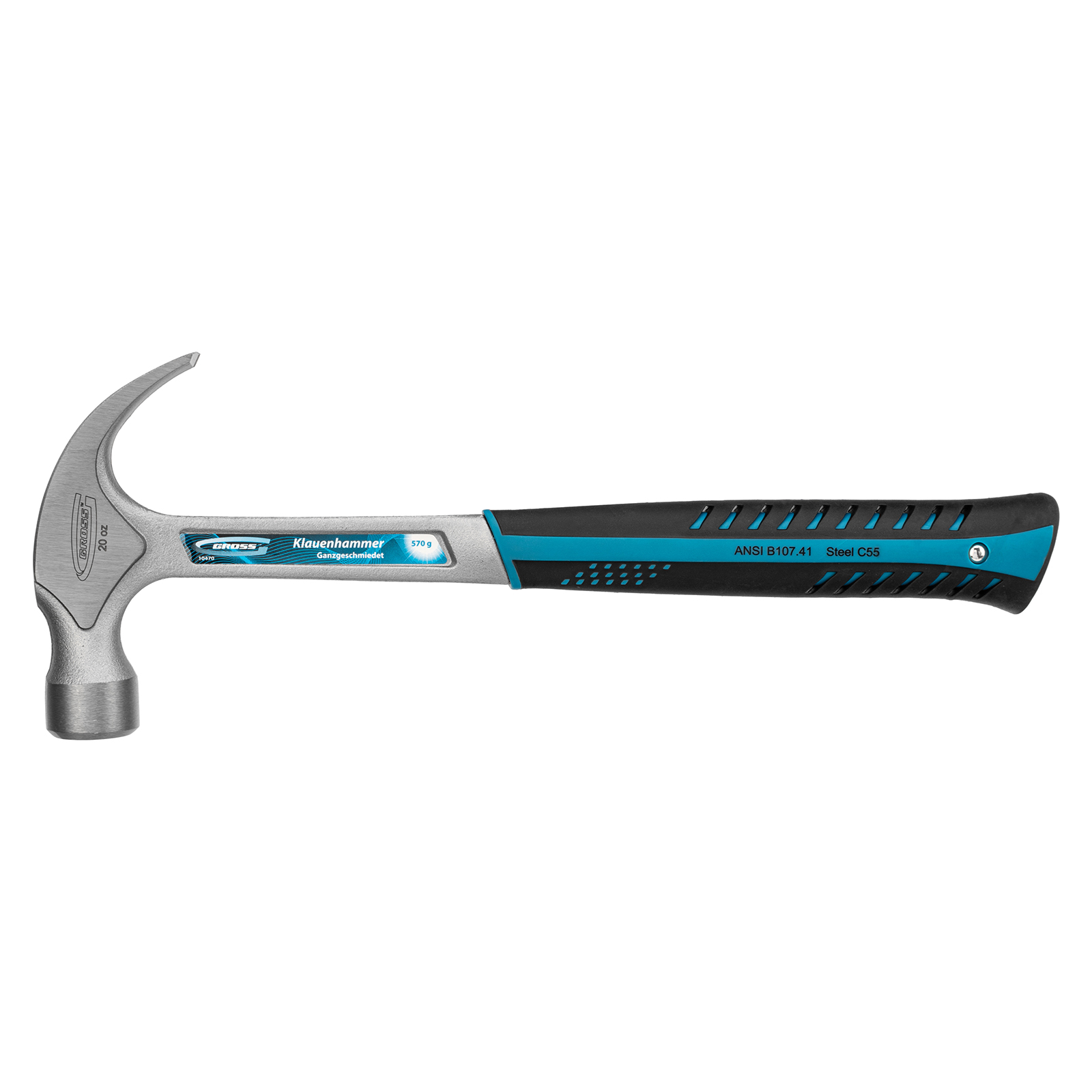 Цельнокованый молоток-гвоздодер Gross 10470 с рабочей головкой весом 570 г и трехкомпонентной рукояткой предназначен для забивания гвоздей и извлечения застрявшего крепежа. Гвозди удобно подцеплять и выпрямлять при помощи изогнутого плоского носка с клиновидной прорезью. Молоток рекомендован как для домашнего, так и профессионального применения.