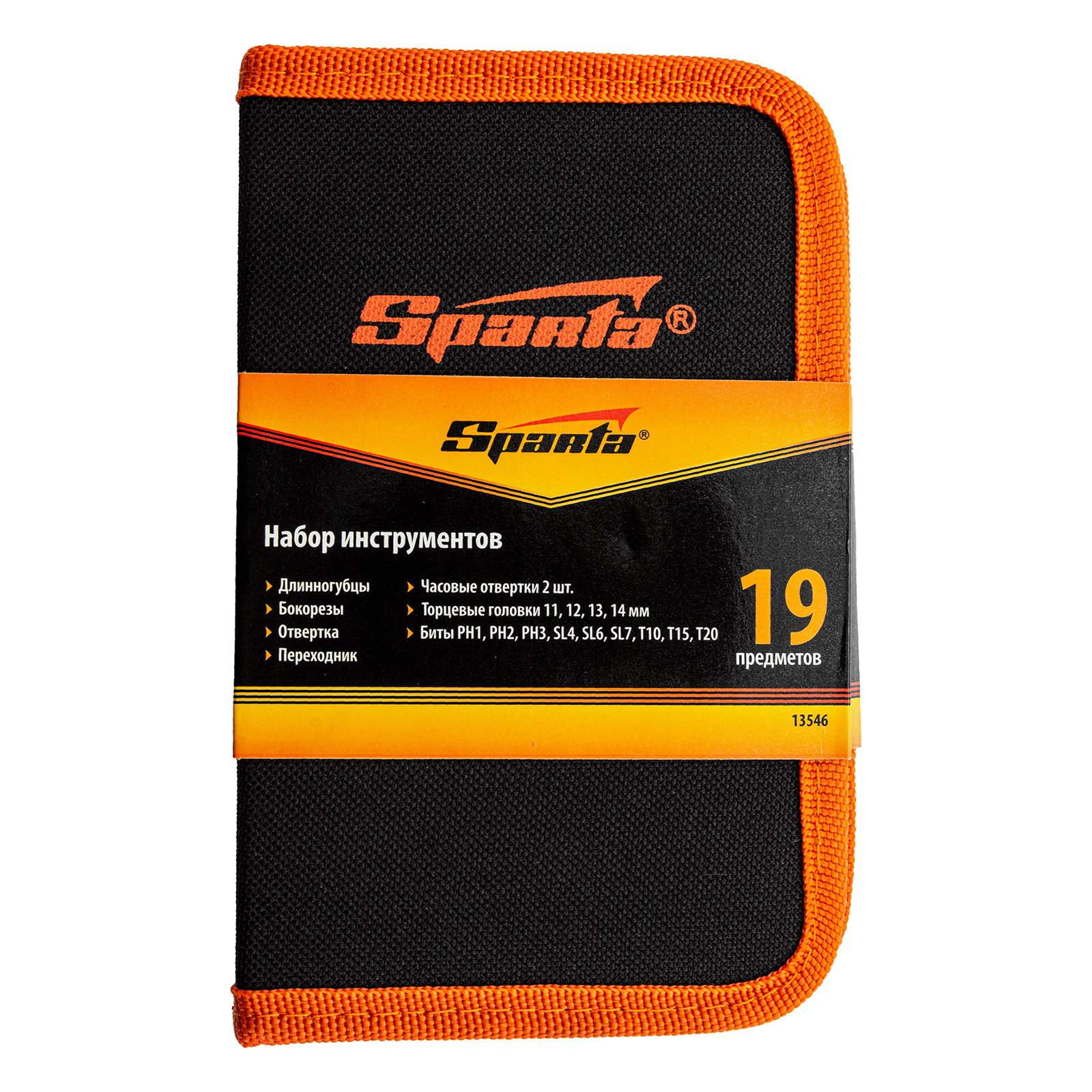 Набор Sparta 13546, 19 предметов, пригодится при выполнении слесарно-монтажных работ. Он будет полезен в хозяйстве для частных мастеров. В наборе есть отвертки для точных работ, отвертка для бит, биты и торцевые головки для монтажа/демонтажа крепежных элементов, бокорезы и длинногубцы для захвата, удержания и перекусывания проводов и мелких деталей.